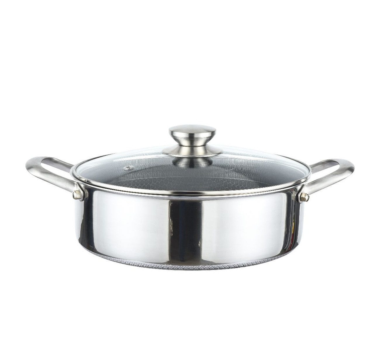 Die Wabenstruktur sorgt für Langlebigkeit, gleichmäßige Wärmeverteilung und ein perfektes Kochergebnis. Mit Glasdeckel und Edelstahlgriff ausgestattet, eignet sich der Topf sowohl für Schmorgerichte als auch für Servieren am Tisch.