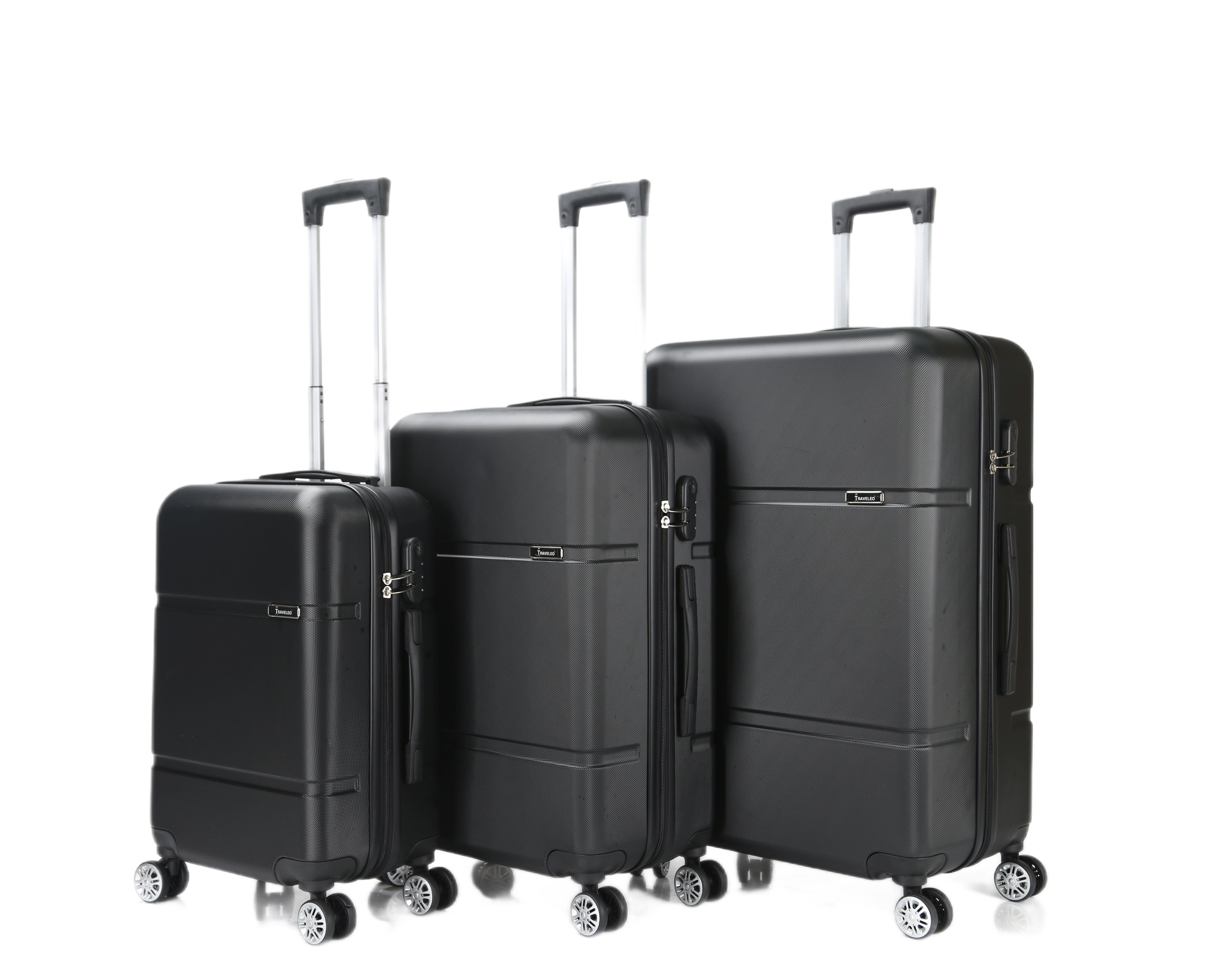 Jeder Koffer ist mit 4 Doppelrollen ausgestatte, welche sich 360° drehen können, das manövrieren ist damit sehr leicht und einfach und vor allem sehr leise.