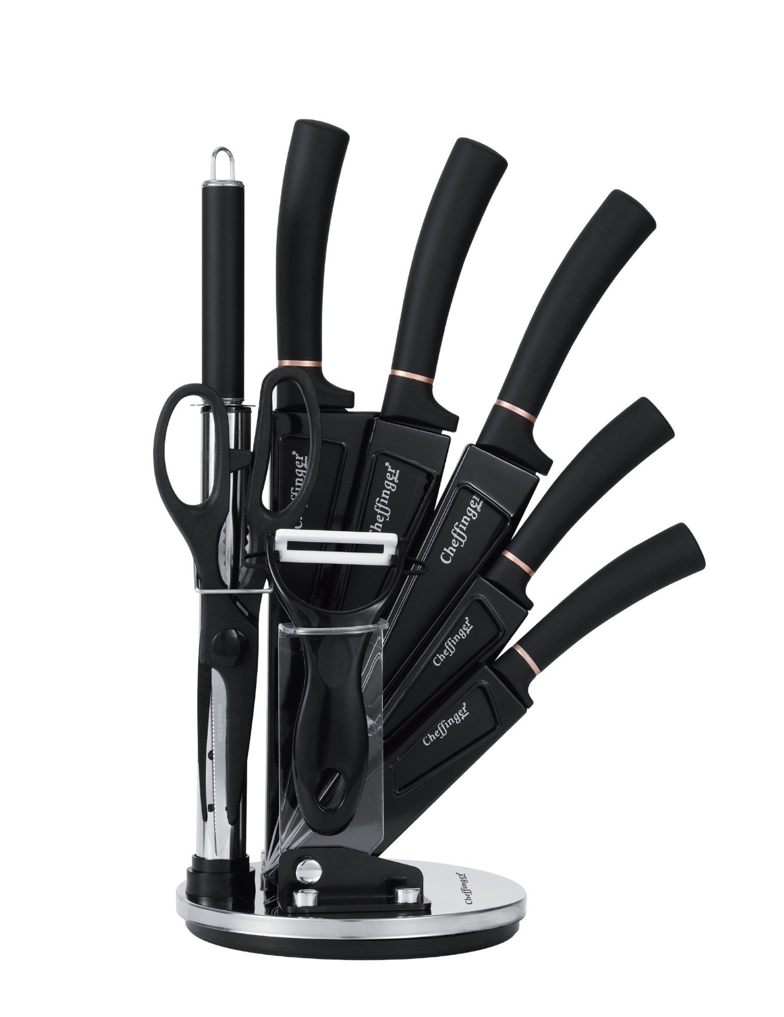 Dank dieses 9-teiligen Messersets können Sie Ihre Küche vervollständigen. Die Messer sind aus hochwertigem Stahl hergestellt. Das Set ist sehr komplett mit einem traditionellen Kochmesser, Brotmesser, Messerschärfer und vielen weiteren Messern.