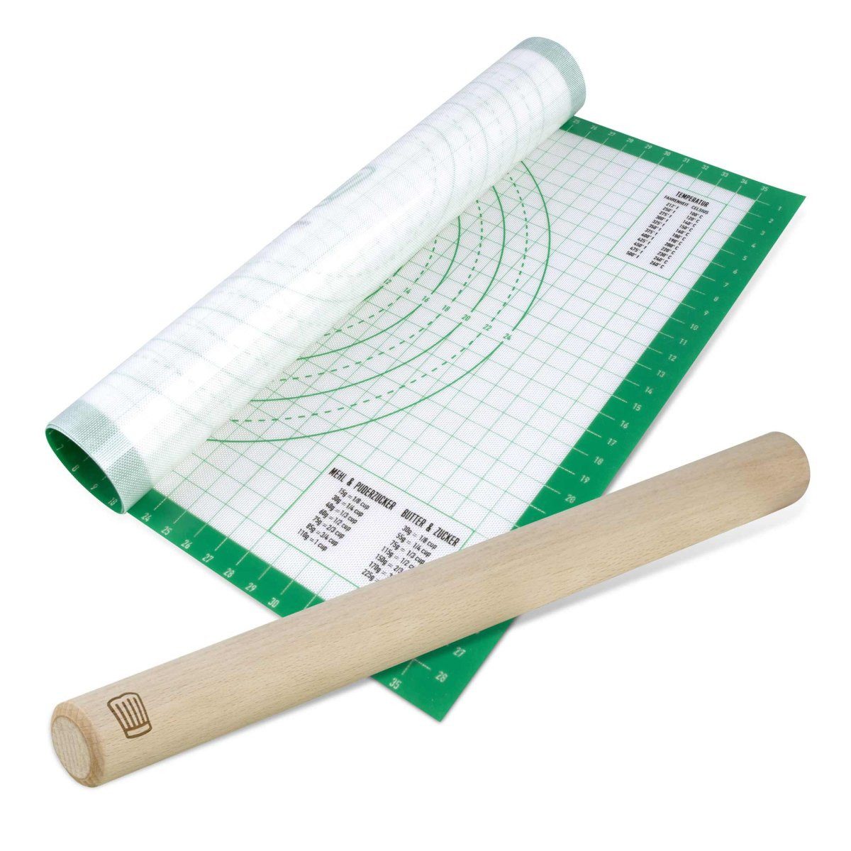 Dieses Set ist nicht nur multifunktional, sondern auch pflegeleicht. Die Silikonmatte ist spülmaschinen-, backofen- und mikrowellengeeignet, während das Rollholz sich einfach per Hand reinigen lässt. Mit diesem Set in Grau und Weiß, kombiniert mit dem natürlichen Holz, erhält deine Küche nicht nur praktische Helfer, sondern auch stilvolle Accessoires. Tauche ein in die Welt des Backens mit diesem professionellen Set und kreiere Meisterwerke in deiner Küche.