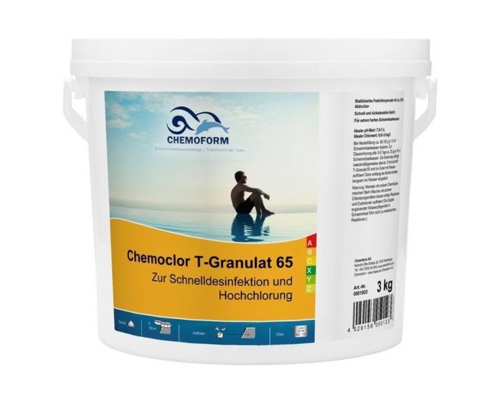 Schnell löslich. Zur Stoß- und Dauerchlorung, für alle Wässer.