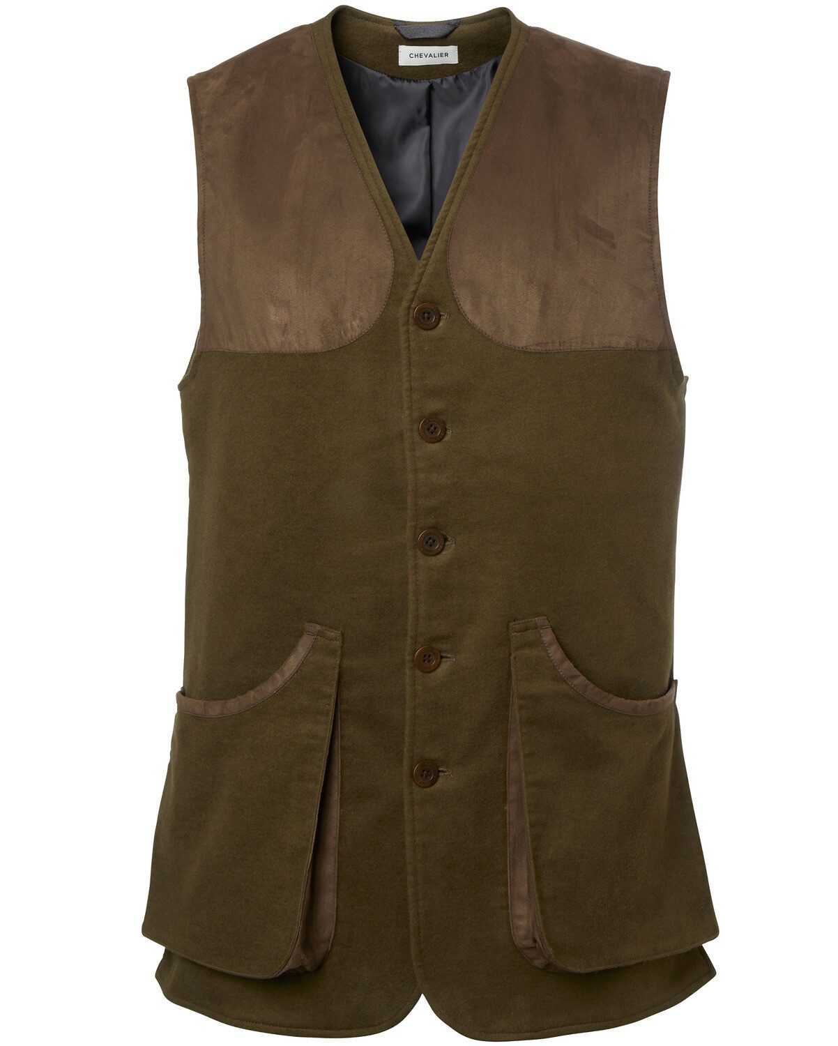 Kombination aus traditioneller Ästhetik und praktischer Funktionalität Im britischen Jagdstil gehalten, kombiniert diese Herrenweste traditionelle Ästhetik mit praktischen Funktionen. Gefertigt aus weichem Moleskin-Material, bietet sie angenehme Wärme. Der leichte Stretchanteil sorgt für Bewegungsfreiheit und erhöht den Tragekomfort bei aktiven Einsätzen. Schulterbesätze aus Alcantara verleihen der Weste eine Veloursleder-Optik, die sowohl robust als auch schützend beim Schießen wirkt. Praktische Details für den Einsatz im Freien Geräumige Fronttaschen ermöglichen einfachen Zugriff auf Munition, was den praktischen Einsatz unterstützt. Die verstellbare Taille sorgt für individuelle Anpassung und eine perfekte Passform, die den Bedürfnissen des Trägers entgegenkommt. Geräuscharmut ist ein weiterer Vorteil bei jagdlichen Aktivitäten, der nicht unterschätzt werden sollte. Stilvolle Passform mit liebevollen Details Die Regular Fit Passform passt sich optimal an und macht die Weste zu einer stilvollen Ergänzung für jedes jagdliche Outfit. Abgerundet wird das Design durch die dezente Chevalier-Logostickerei, die der Weste einen eleganten Touch verleiht. Eine durchdachte Wahl für alle, die Wert auf Stil und Funktionalität legen. Oberstoff: 98% Baumwolle, 2% Elasthan; Sonstige Materialien: Besätze, 100% Polyester