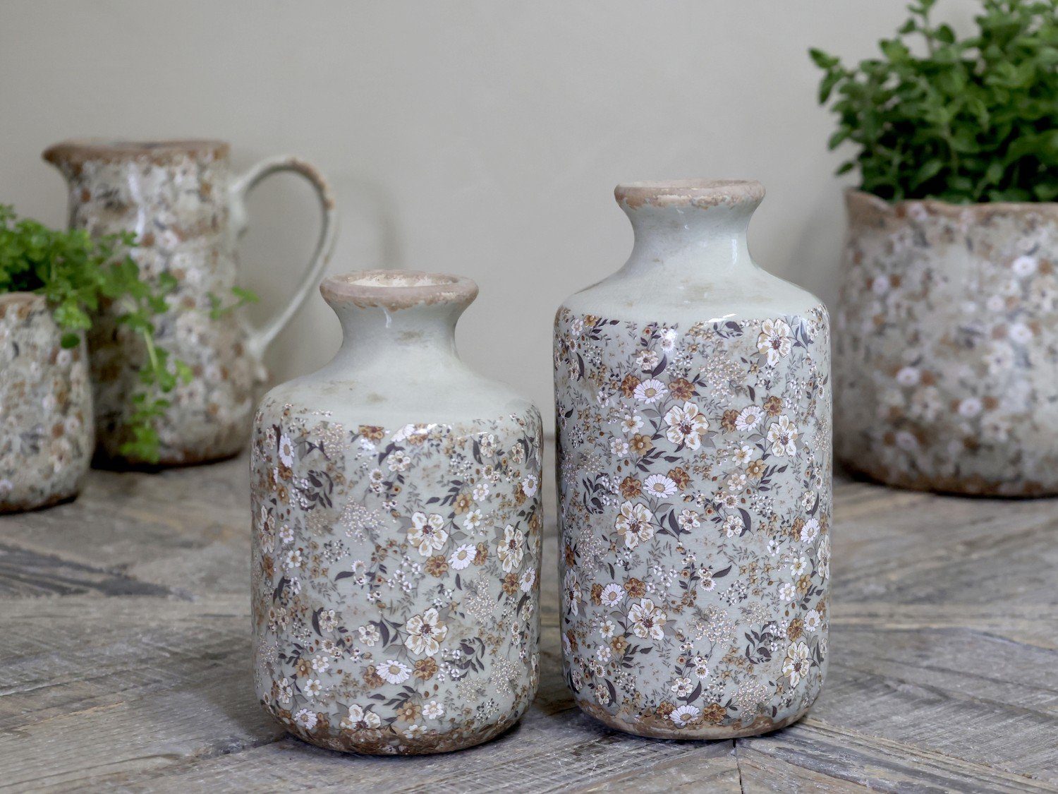 Evry Vase mit Blumen H17,5/D11 cm verte Keramik Diese Vase von Chic Antique gehört zur Evry-Serie und hat ein wunderschönes Blumenmuster. Die Keramikvase zeigt auf beeindruckende Weise ihren rustikalen Rand sowohl oben als auch unten. Diese eignet sich perfekt für sich allein und noch perfekter mit einem schönen Blumenstrauß. Diese können sie zusammen mit anderen Schönheiten der Evry-Serie verwenden, um einen stimmigen Look zu schaffen. Die Evry Serie Evry ist eine wunderschöne Serie von Pflanzgefäßen, Vasen und einer Kanne. Diese erkennst du an ihrer zarten grünen Nuance und einem dezenten Muster aus zarten Blumen in Weiß, Braun und Beigetönen, alles mit einem schönen rustikalen Look. Die Evry Serie ist wasserdicht und sieht sowohl drinnen als auch draußen fantastisch aus.