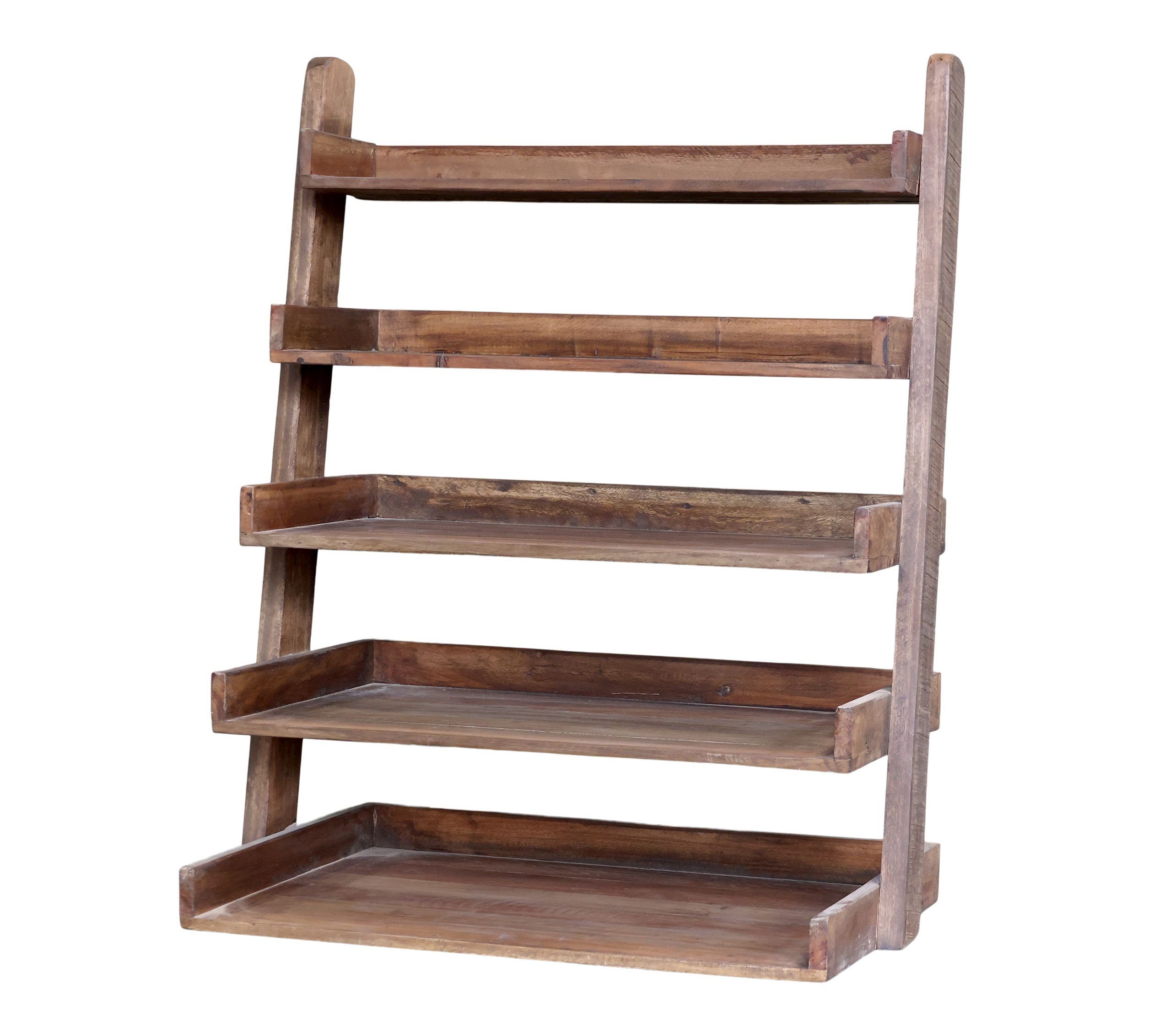 Das Regal ist handgefertigt aus altem, recycelten Holz mit einer wunderschönen Patina und Qualität. Die fünf Regalböden haben unterschiedliche Tiefen, was eine praktische und schöne Form schafft.