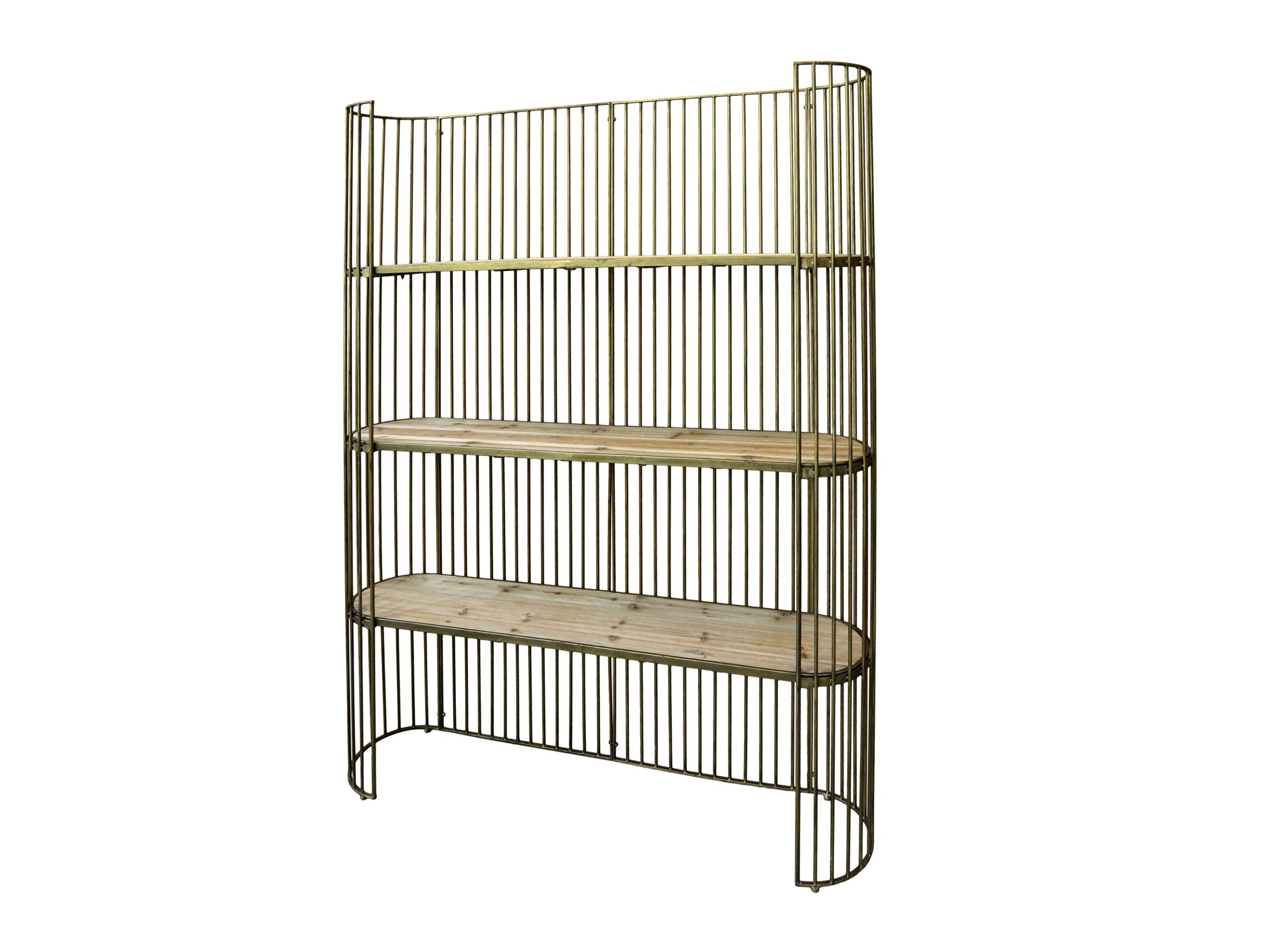 Vincent ist ein aufwendig gestaltetes Regal mit oval geschwungener Form. Das kunstvolle Gestell aus Eisen hat ein feines goldfarbenes Antik-Finish. Aufgrund seiner Размер ist es Ideal für alle, die ihr Interior gerne mal verändern. Zudem lässt das edle Design sich wirklich sehr vielseitig einsetzen - Schönes Geschirr, Vasen, saisonale Dekoration, Gläser, Körbe, Pflanzen und Bücher finden hier ihren Platz. Aber auch im Home-Office wird sich das Regal von seiner ebenso dekorativen wie nützlichen Seite zeigen. Oder gibt es bei Ihnen vielleicht wertvolle oder auch witzige Sammler-Objekte? Auch diese können perfekt auf dem offenen Regal präsentiert werden. Durch das Offene wirkt das Regal trotz seiner Размер leicht. Die drei Regalböden sind aus schön gemasertem Tannenholz und haben jeweils eine Tragkraft von bis zu 15 Kilo.