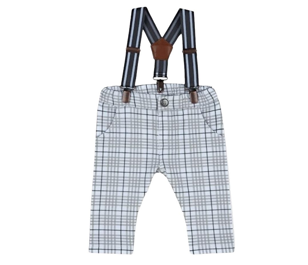 Chicco Baby Jungen Hose mit Hosenträgern – Elegante Karo-Hose für besondere Anlässe. Diese stilvolle Babyhose von Chicco überzeugt mit ihrem klassischen Karomuster in Grau und Weiß und den hochwertigen, abnehmbaren Hosenträgern im Streifendesign. Der moderne Schnitt und das hochwertige Baumwollmaterial bieten höchsten Tragekomfort und Bewegungsfreiheit für kleine Gentlemen. Dank des elastischen Bunds sitzt die Hose bequem und passt sich optimal an. • Elegantes & klassisches Design mit edlem Karomuster • Hoher Tragekomfort durch weiche Baumwolle & elastischen Bund • Ideal für festliche Anlässe, lässt sich perfekt mit Hemden & Blazern kombinieren