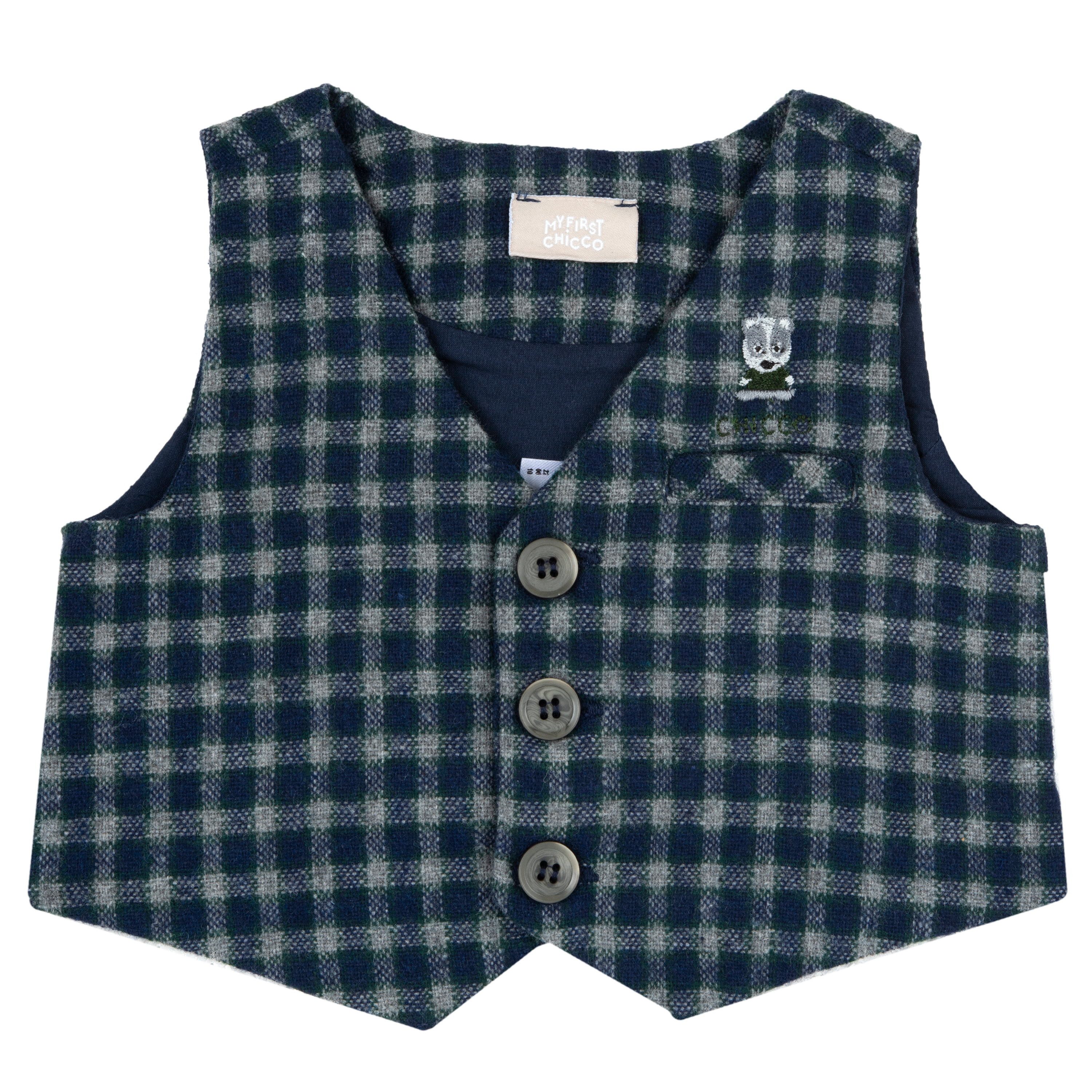 Chicco Baby Weste – Elegante Kinderweste für Jungen in Karomuster Verleihen Sie dem Outfit Ihres kleinen Jungen einen stilvollen Touch mit dieser eleganten Weste von Chicco. Die hochwertige Baby Weste besticht durch ihr klassisches Karomuster in Blau-Grau und ist perfekt für besondere Anlässe wie Hochzeiten, Taufen oder festliche Feiern. Die Vorderseite wird mit drei Knöpfen geschlossen, während die Rückseite mit einer dekorativen Gurtverstellung versehen ist, um eine perfekte Passform zu gewährleisten. Dank des weichen und atmungsaktiven Stoffes bietet diese Kinderweste maximalen Komfort für Ihr Baby oder Kleinkind.