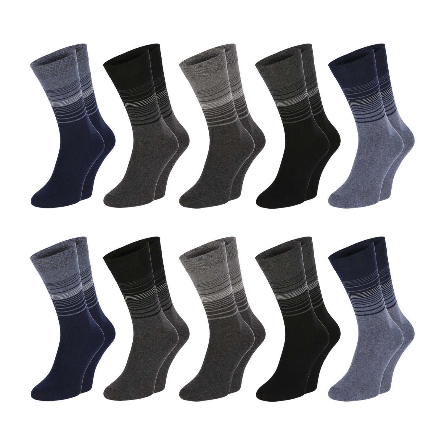 Die beliebten Streifensocken gibt es in fünf ausgewählten Farbdesigns in den Grundfarben Grau, Blau und Schwarz, so dass sie beinahe zu jeder Frauen- und Männer-Garderobe passen. Eine willkommene Alternative zur einfarbigen Basic Socke, wenn es doch etwas mehr modischer Pepp sein darf. Im Freizeitbereich kombinierst du die Streifensocke aus Baumwolle von Chili Lifestyle idealerweise mit Jeans. Greife am besten gleich zu den Basic Streifen Socken im Zehnerpack.