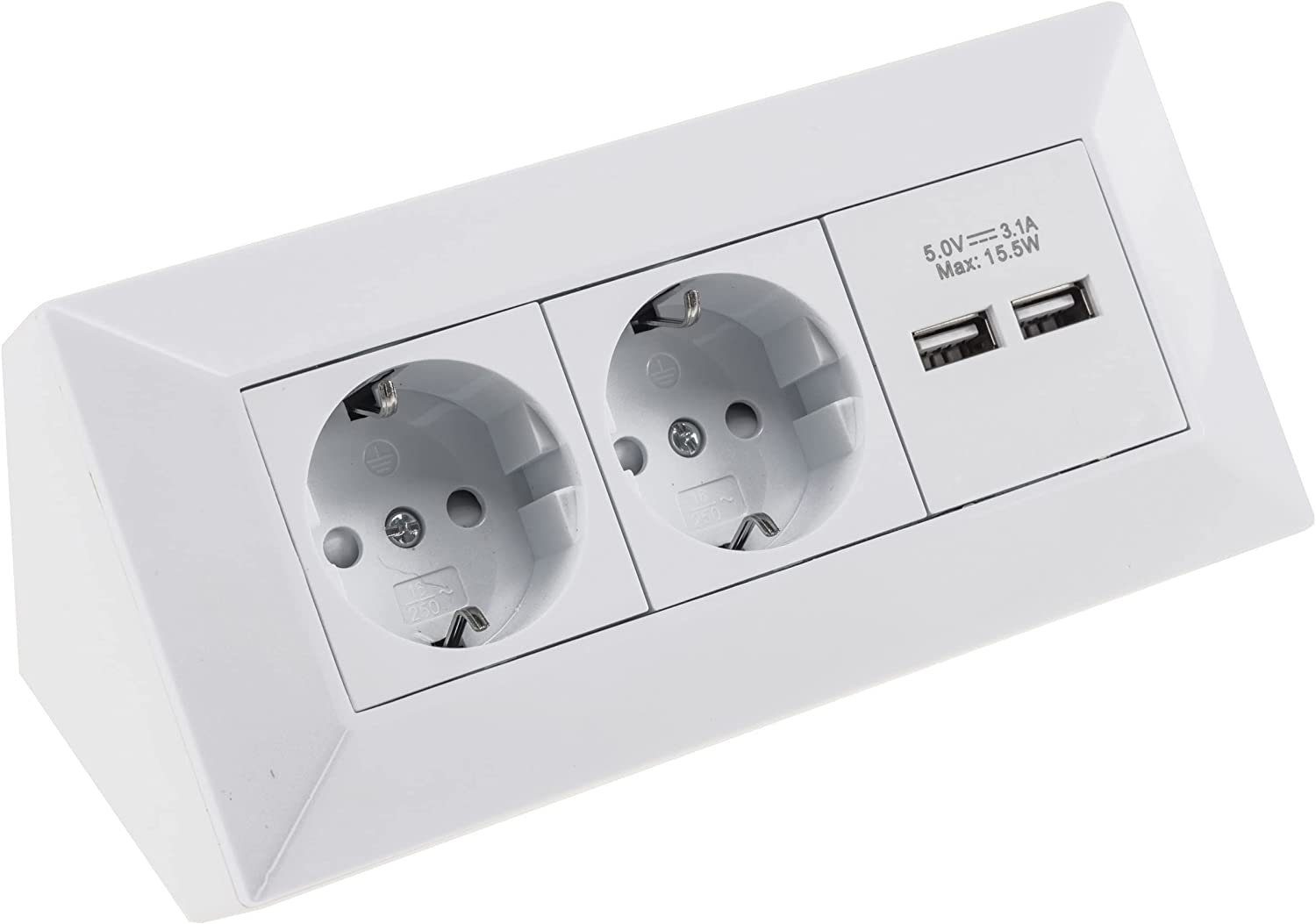 Superpraktisch: Mit diesem Powerblock haben Sie in Küche, Werkstatt etc. nicht nur 2 schnell erreichbare Steckdosen, sondern gleich noch 2 USB Ladebuchsen für Ihr Smartphone oder Tablet.