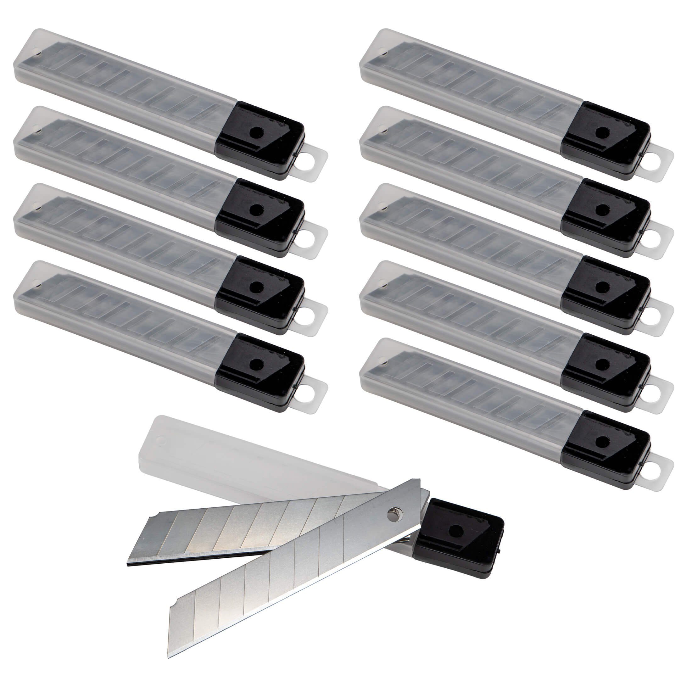 Das Set enthält 100 Klingen, die in zehn praktischen Köchern geliefert werden, der eine sichere Aufbewahrung und einfache Handhabung ermöglicht. Die Klingen bestehen aus hochwertigem Stahl und sind präzise geschärft, um saubere Schnitte zu gewährleisten. Ihr Abbrechdesign ermöglicht es, die Klinge bei Bedarf schnell und einfach zu erneuern, indem einfach das abgenutzte Segment abgebrochen wird, um eine neue scharfe Spitze freizulegen.