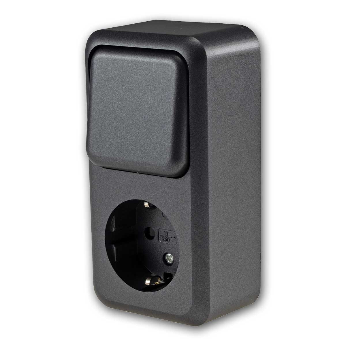 Schalter FASKO Kombi Steckdose Schalter, AP, Anthrazi 250V~