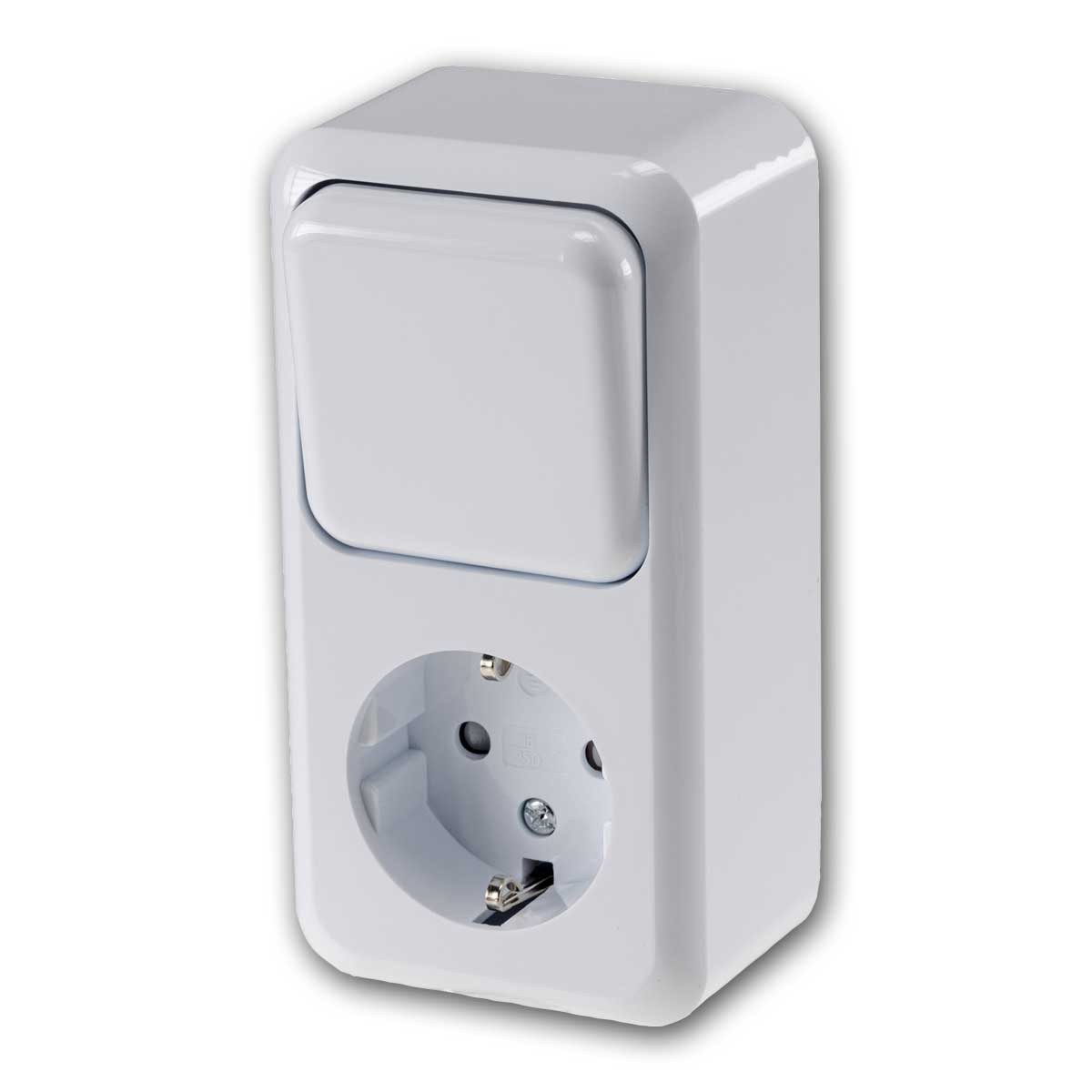 Schalter FASKO Kombi Steckdose Schalter, AP, Weiß 250V~