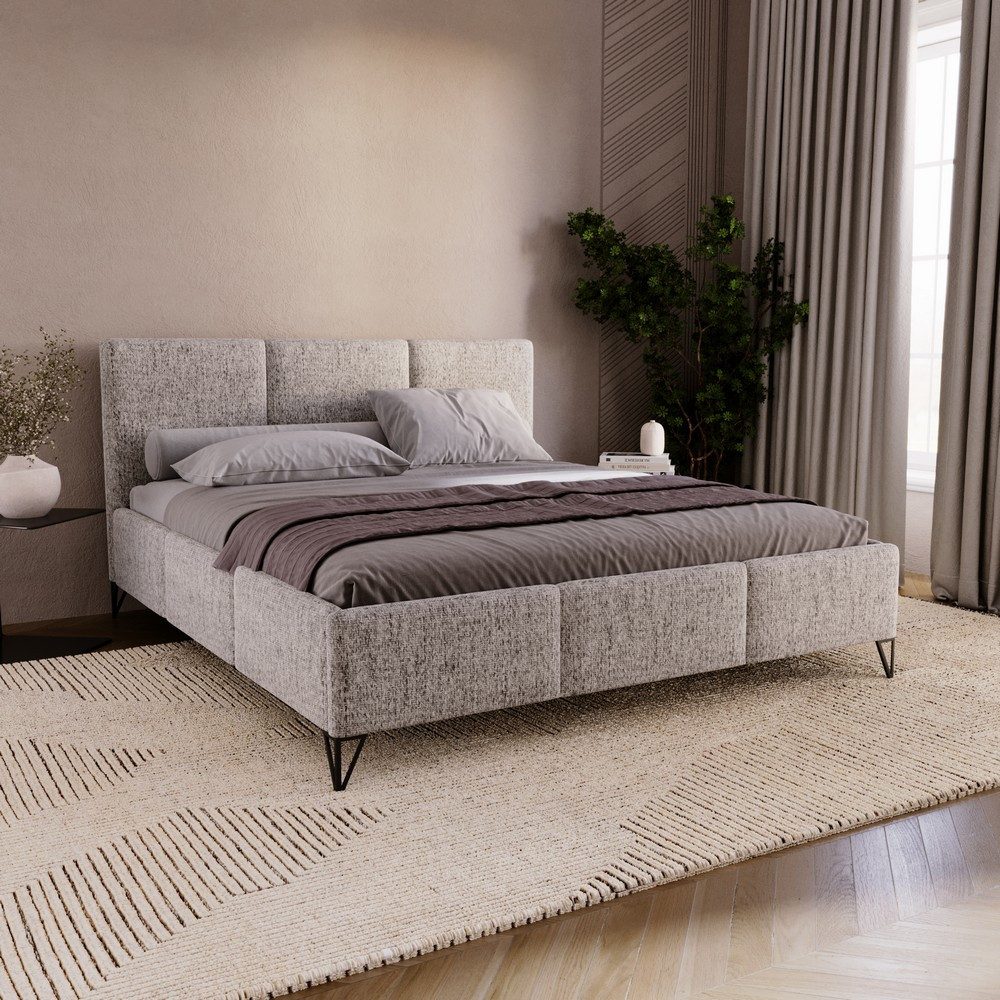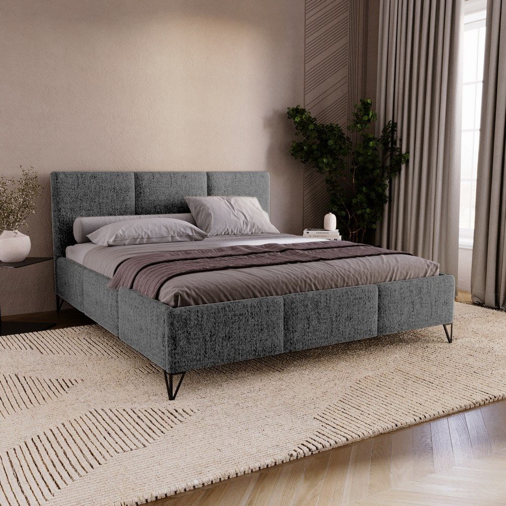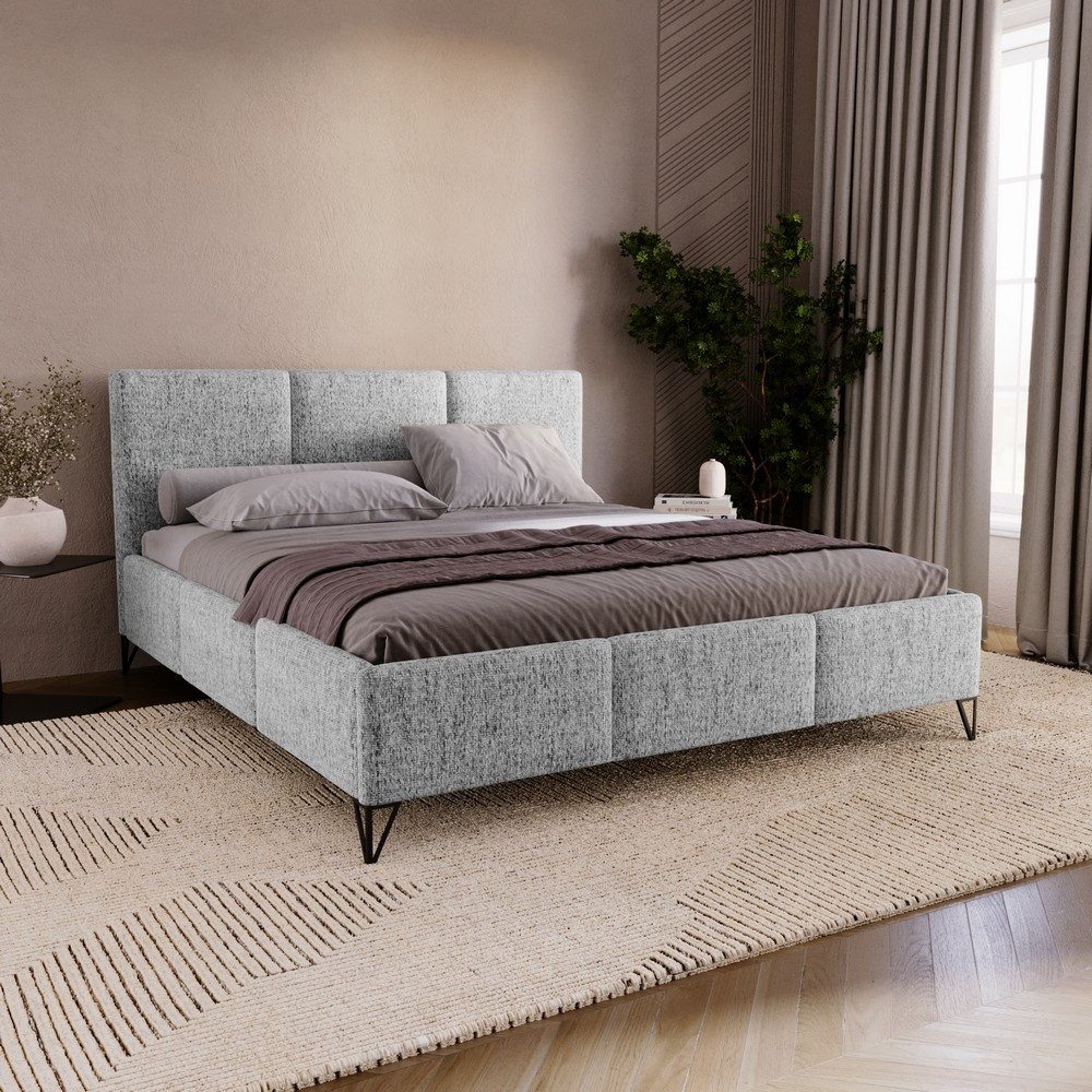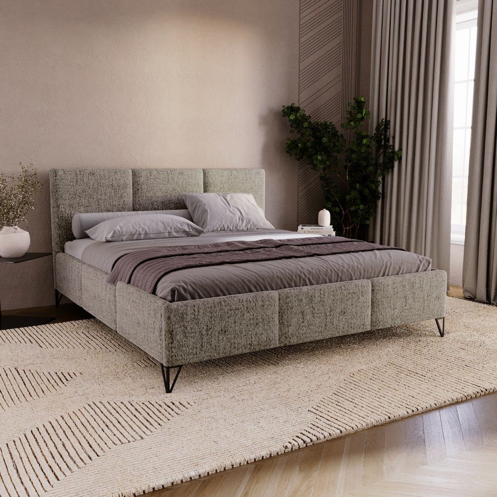 Sorgfältige Details, ein angenehm zu berührender Strukturstoff und die hochwertige Verarbeitung unterstreichen die Qualität des Möbelstücks. Chilly Modero ist ein universelles Bett mit Stauraum und wählbarem Rahmen, das Stil, Bequemlichkeit und praktische Lösungen vereint – ideal für das moderne, funktionale Schlafzimmer.