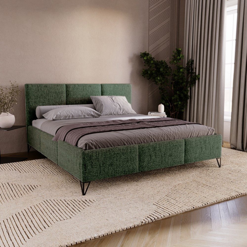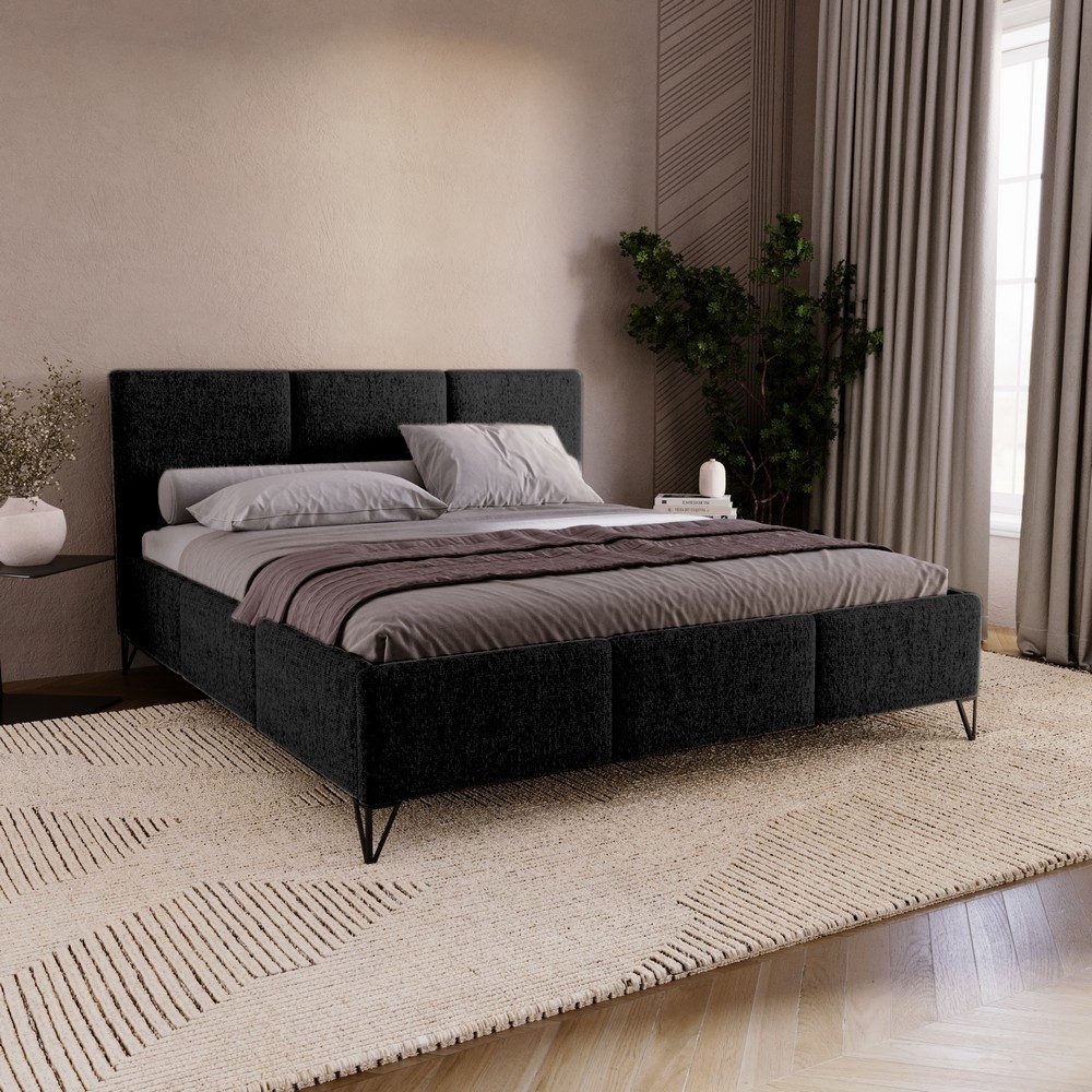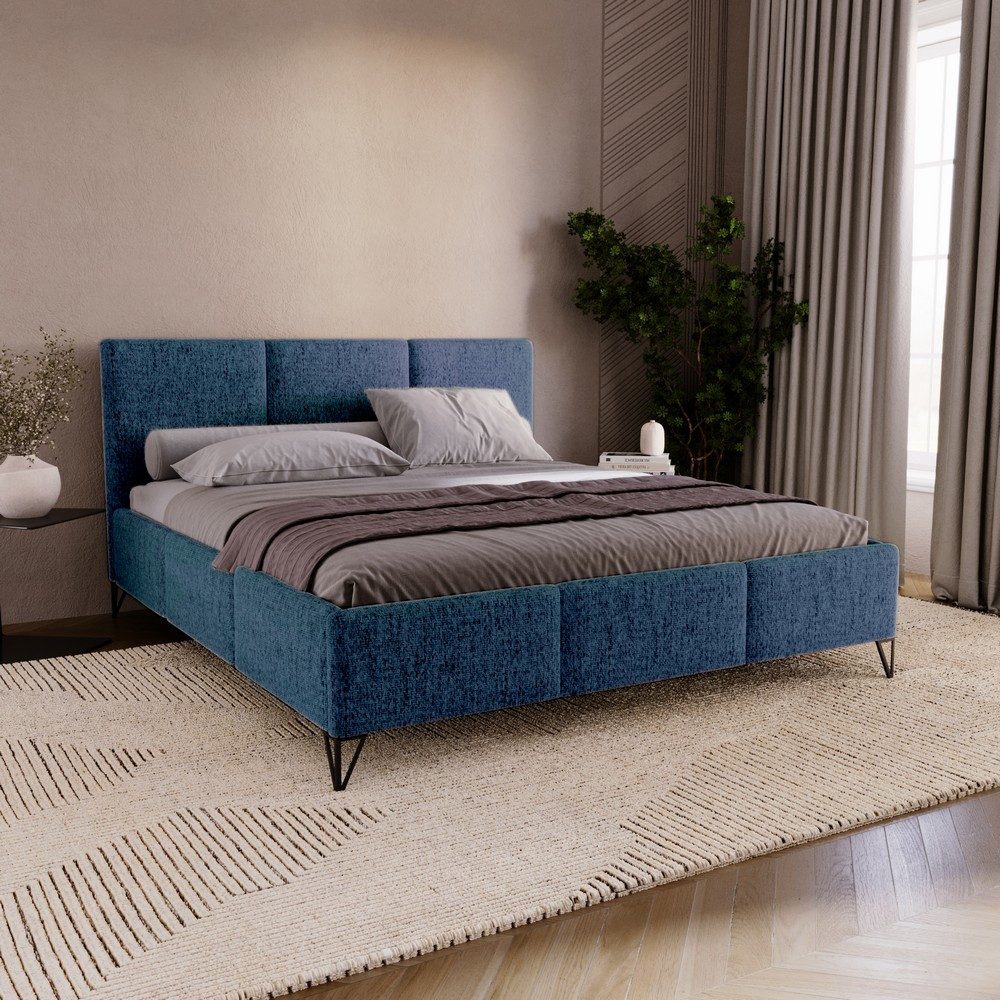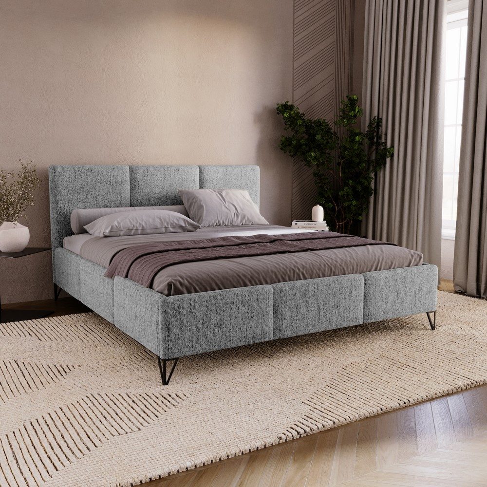 Sorgfältige Details, ein angenehm zu berührender Strukturstoff und die hochwertige Verarbeitung unterstreichen die Qualität des Möbelstücks. Chilly Modero ist ein universelles Bett mit Stauraum und wählbarem Rahmen, das Stil, Bequemlichkeit und praktische Lösungen vereint – ideal für das moderne, funktionale Schlafzimmer.