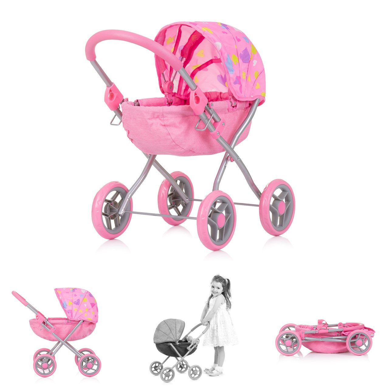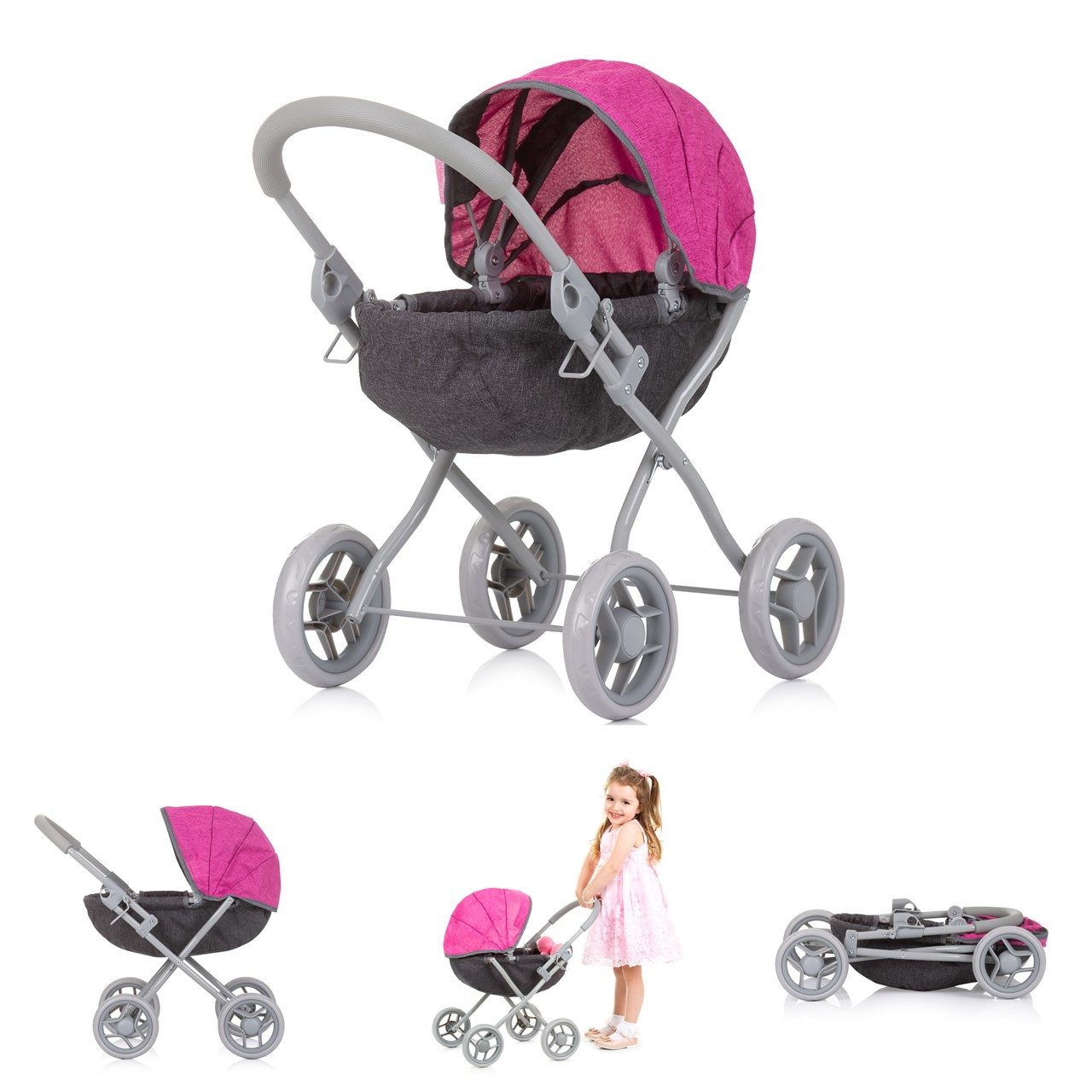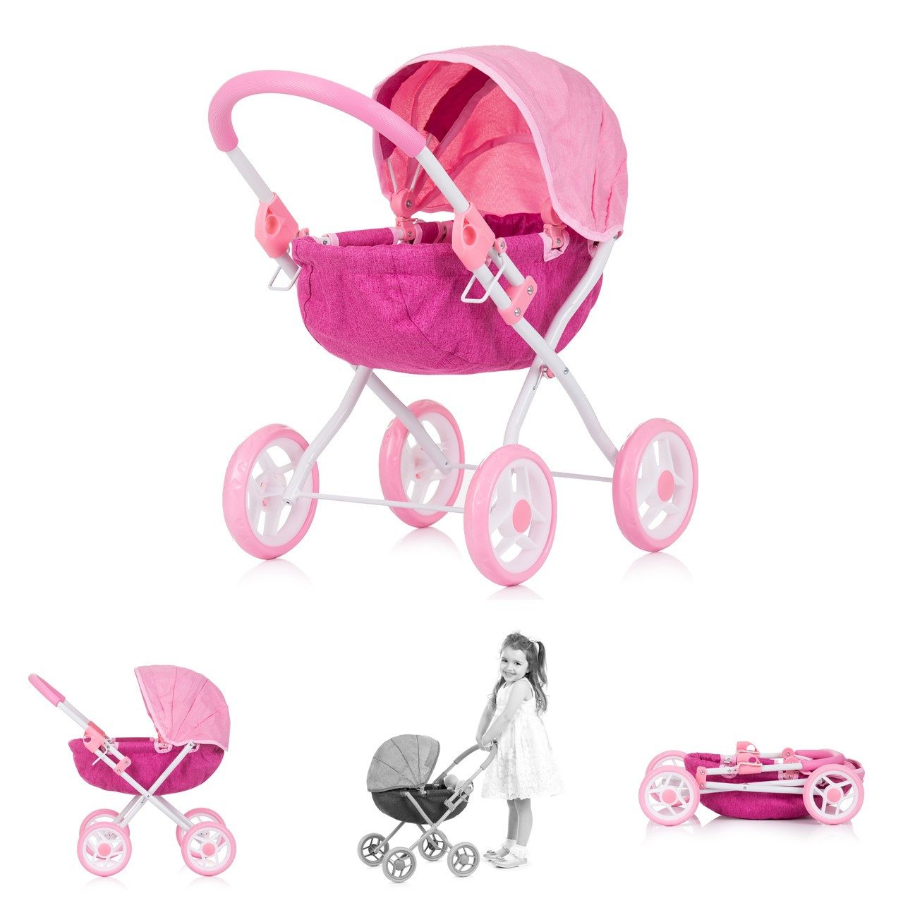 Впередe Informationen Перейти к товару Chipolino Puppenwagen Daisy klappbar, Sonnendach, vier große Räder, ab 3 Jahren: