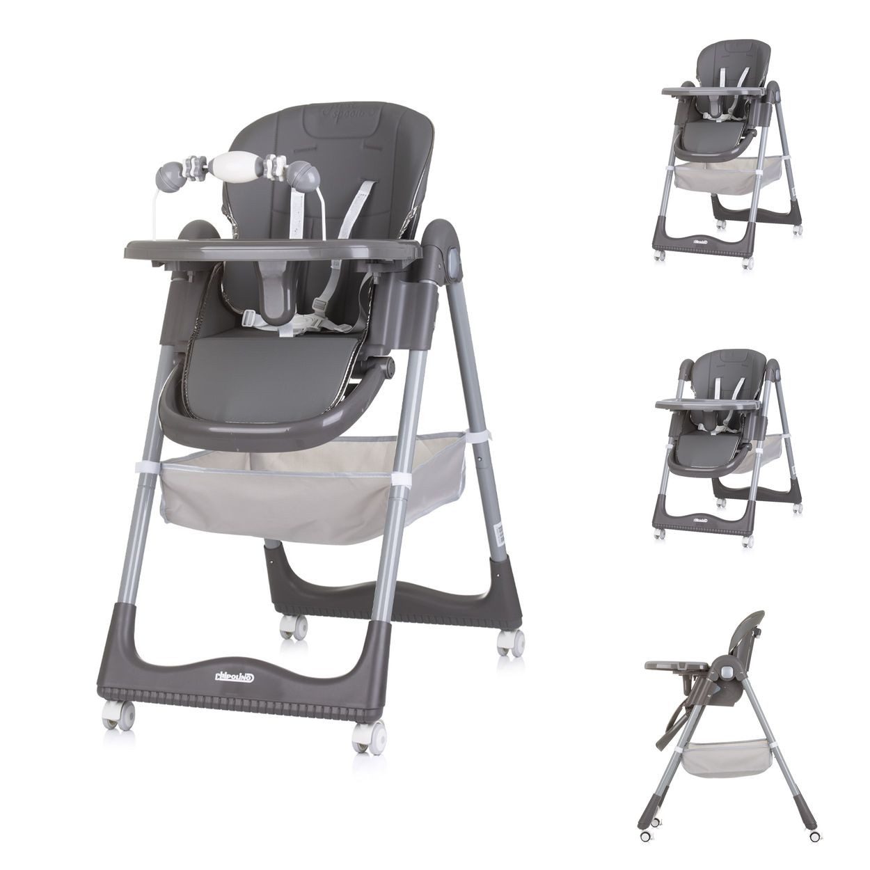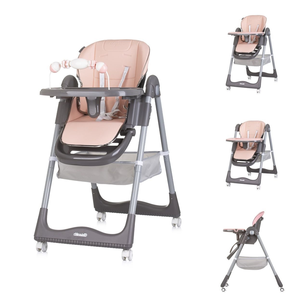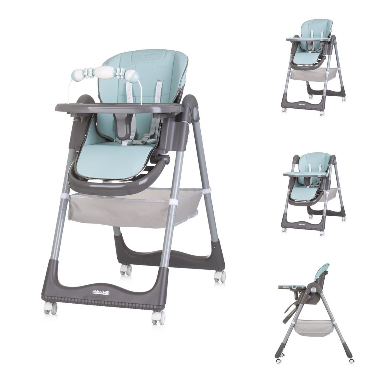 Sobald ein Kind sitzen kann, möchte es mit den Eltern am Tisch sitzen. Das ist mit dem Hochstuhl Bambino von Chipolino ab sofort kein Problem mehr. Der Sitz ist mit einem abwaschbaren PVC bezogen, der Ihnen die Reinigung erleichtert. Die Rückenlehne und Fußstütze lassen sich mehrfach bis zur kompletten Liegeposition verstellen. Das Doppeltablett ist mehrfach verstellbar und verfügt über einen Flaschen- oder Bechersockel. Der Hochstuhl ist ebenfalls in der Höhe verstellbar, sodass er sich der Höhe Ihres Esstisches anpassen kann. Endlich kann Ihr Baby auf Augenhöhe mit Ihnen seine Mahlzeiten zu sich nehmen.