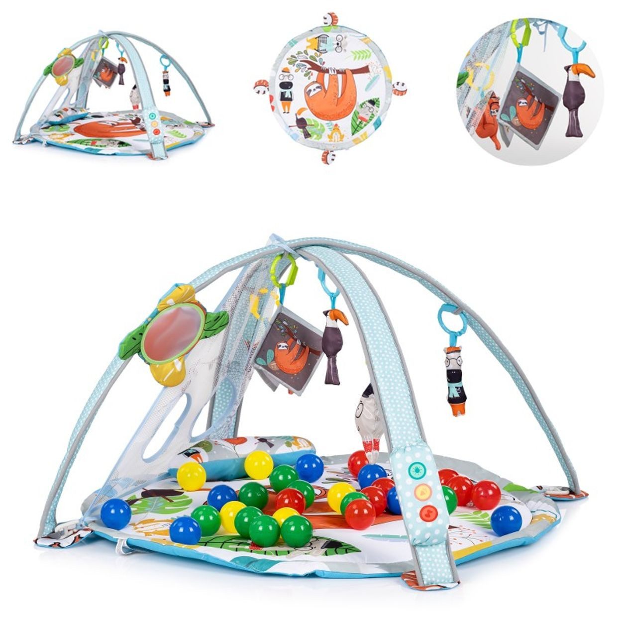 Впередe Informationen Перейти к товару Chipolino Spielbogen Jungle Musik, Licht, Bälle, Krabbeldecke, hängende Figuren: