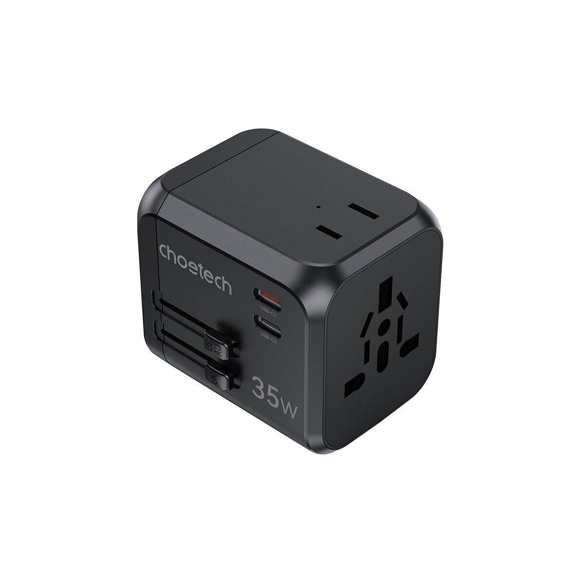 Choetech PD5008 Reise-Netzwerkladegerät, 3xUSB-A, 2xUSB-C, GaN, 35W, US/EU/UK/AU (schwarz).