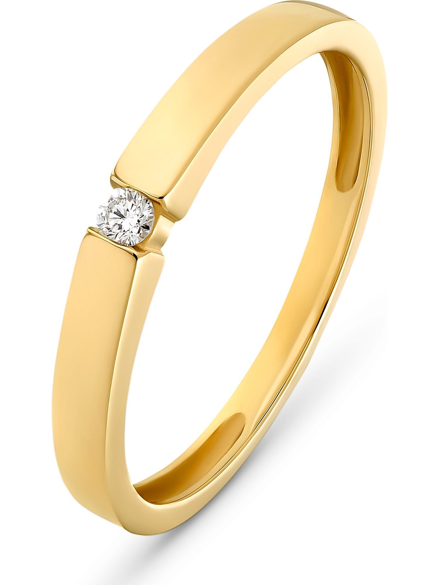 Ein absolutes Must-Have für modebewusste Frauen: Dieser stilvolle Damenring von CHRIST aus feinstem 375er Gelbgold, besetzt mit einem einzelnen Diamanten. Der Diamant von 0,04 Karat im zeitlosen Brillantschliff ist mit seinem Funkeln und Glitzern ein dezentes, aber wirkungsvolles Highlight, das immer wieder durch strahlendes Aufblitzen die Blicke auf sich zieht. Für ein besonders edles, glänzendes Finish sorgt die polierte Oberfläche. Ganz individuell lässt sich das Schmuckschstück auf Wunsch noch mit einer Gravur personalisieren - so machst du den Ring zu einem einzigartigen Geschenk an dich selbst oder deinen Lieblingsmenschen. Dieser Ring verleiht deinem Look eine feminine Eleganz und wird schnell zum unverzichtbaren Begleiter – für jeden Tag und jeden Anlass.