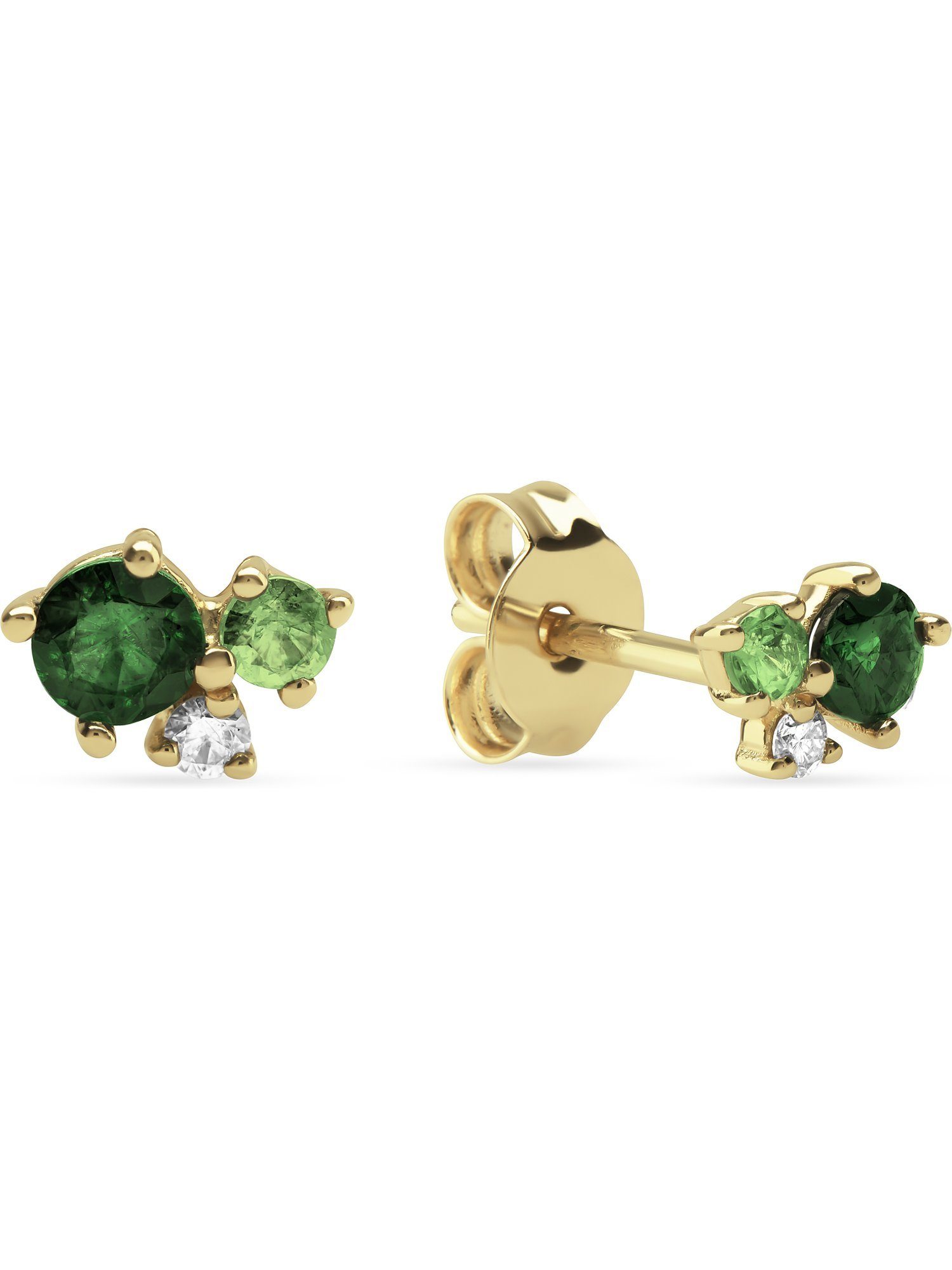 Trio de Luxe! Du suchst nach einem einzigartigen Accessoire? Dann sieh dir diese Ohrstecker von CHRIST genauer an. Zwei grüne Farbsteine und ein weißer Brillant spielen die Hauptrollen in diesem modernen Design. Freue dich auf einen rund facettierten Tsavorit in Dunkelgrün und einen kleineren rund facettierten Tsavorit in Hellgrün, die leicht versetzt nebeneinander sitzen. Das volle Leuchtfeuer der Farbsteine entfacht der darunter angebrachte weiße Brillant. Die Basis aus hochwertigem 585er Gelbgold sorgt in Kombination mit den grünen Farbsteinen für eine royale Note. Der praktische Steckverschluss garantiert leichtes Anlegen und sicheren Halt.