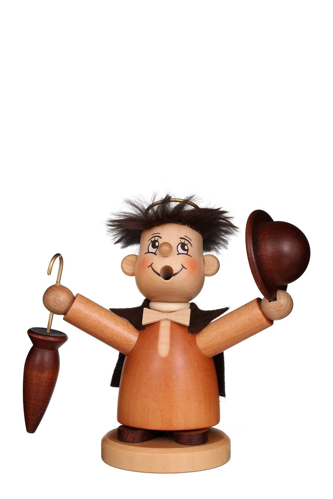 Dieser Räuchermann Arthur der Engel aus Seiffen im Erzgebirge wird in liebevoller Handarbeit vom Hersteller Christian Ulbricht gefertigt.