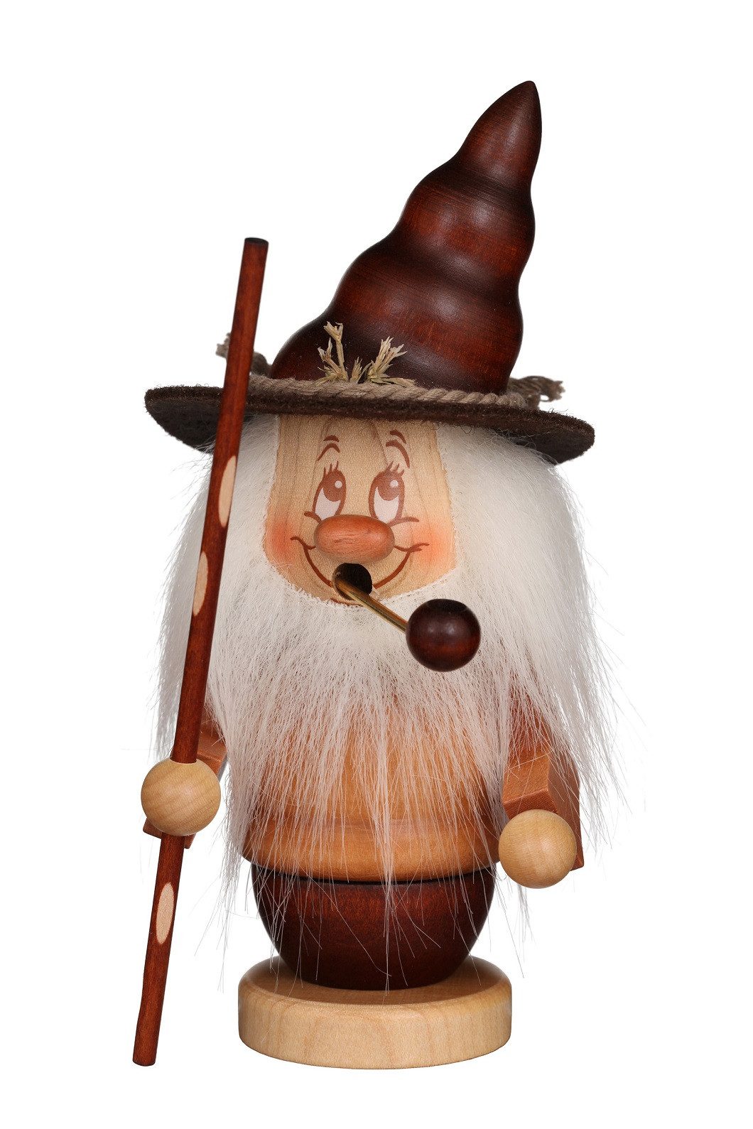 Verleihen Sie Ihrem Zuhause Magie mit dem Christian Ulbricht Räuchermann Wichtel "mit Stab". Der 16,5 cm große Holz-Wichtel mit langem, weißem Bart strahlt in natürlicher Farbe und verzaubert mit seinem charmanten Lächeln. Ein echter Hingucker, der Gemütlichkeit und Duft verbreitet.