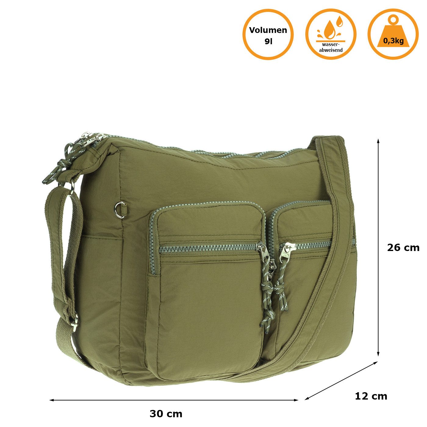 Die Tasche ist aufgeteilt in zwei Hauptfächer mit Reißverschluss und besitzt an jeder Seite der Tasche ein Steckfach