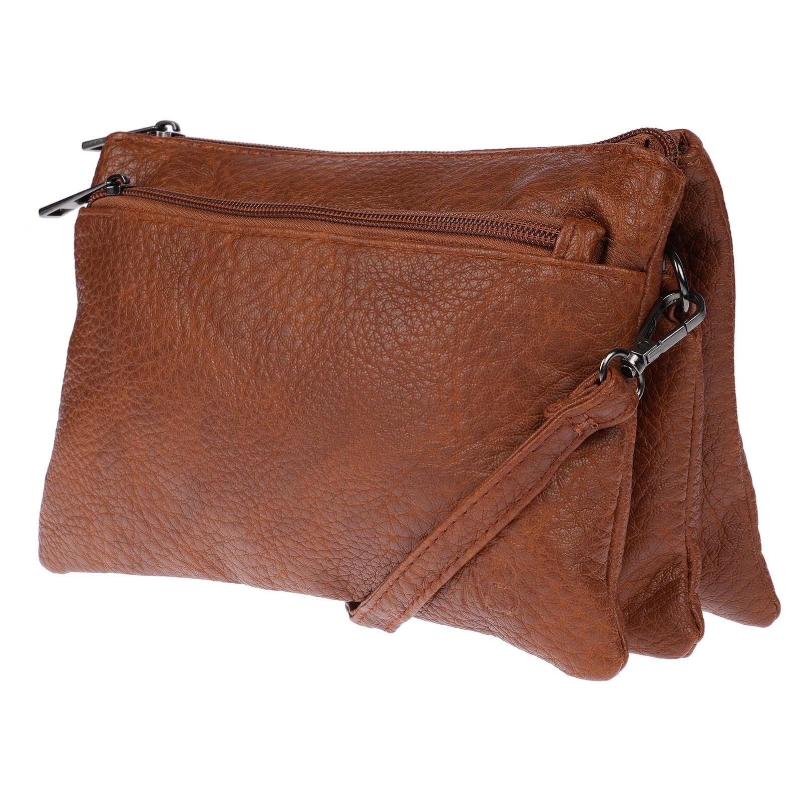 Hochwertige mittelgroße Damen Umhängetasche Material: hochwertiges und strapazierfähiges PU Maße: 24 x 16 x 7-10 cm (Breite x Höhe x Tiefe) Riemenlänge ist bis ca. 150 cm individuell einstellbar Das Hauptfach ist aufgeteilt in drei Reißverschluss-Hauptfächer Im Innern ein Steckfach sowie ein weiteres Reißverschlussfach Ein Reißverschlussfach auf der Frontseite Ein Reißverschlussfach auf der Rückseite