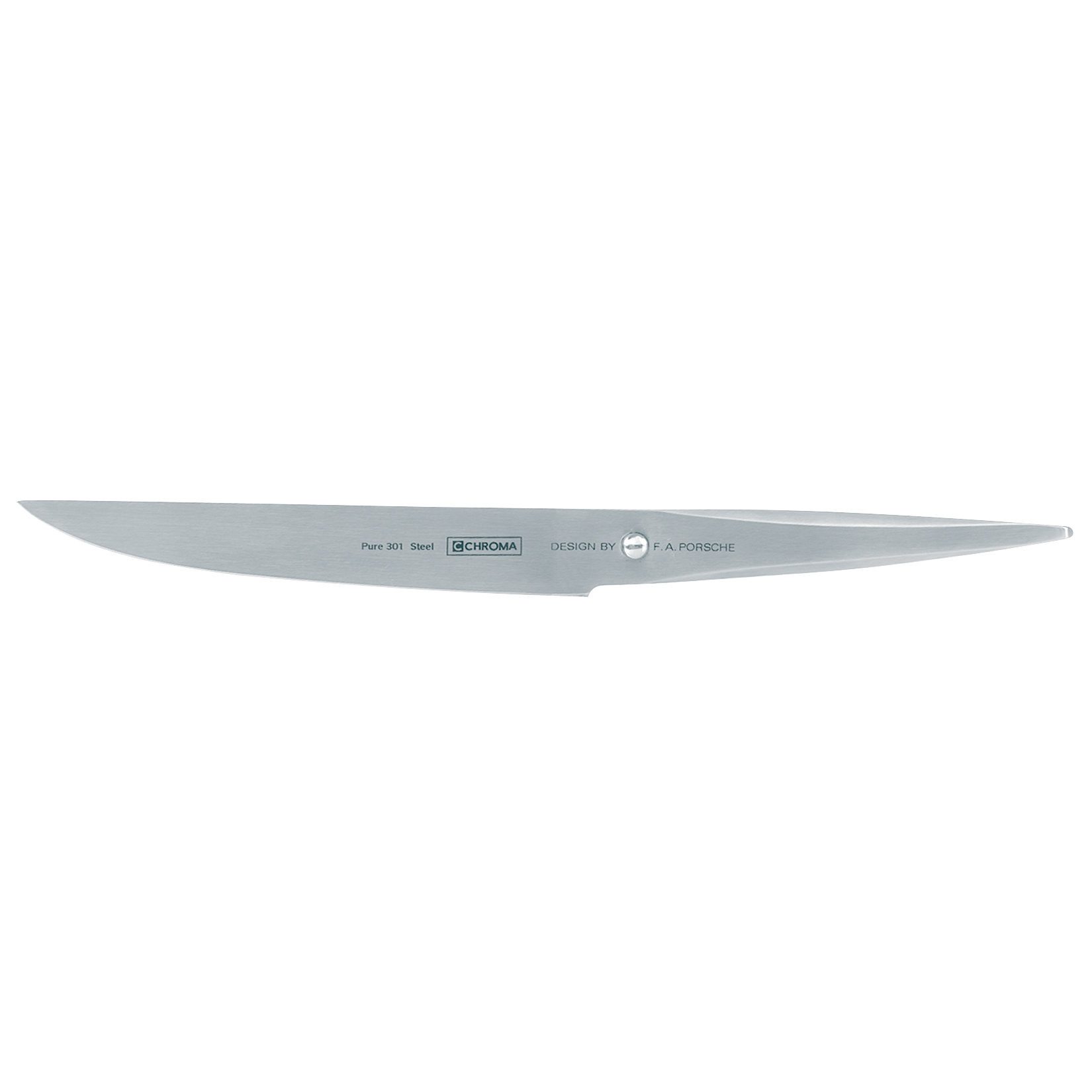 Mit einem museumsreifen Porsche zum Dinner, in der Hand ein schnittiges Modell mit perfekten Maßen und auf dem Teller ein ordentliches T-Bone-Steak - was will man(n) mehr? Ob Barbecue oder Dinner: Das P-15 CHROMA type 301 Steakmesser 12cm der Porsche-Serie vereint vollkommene Balance mit haarscharfer Funktionalität und liegt wunderbar in der Hand. Für die stets perfekte Schärfe und Schnitthaltigkeit wurde bewusst auf den Sägeschliff verzichtet. Somit ist Nachschärfen per Schleifstein jeder Zeit möglich. Und sein Design ist wahrhaft museumsreif: In Wien Exponat der Ausstellung des Museums für angewandte Kunst - bei Ihnen ein schmucker Begleiter für einen unvergesslichen Abend!
