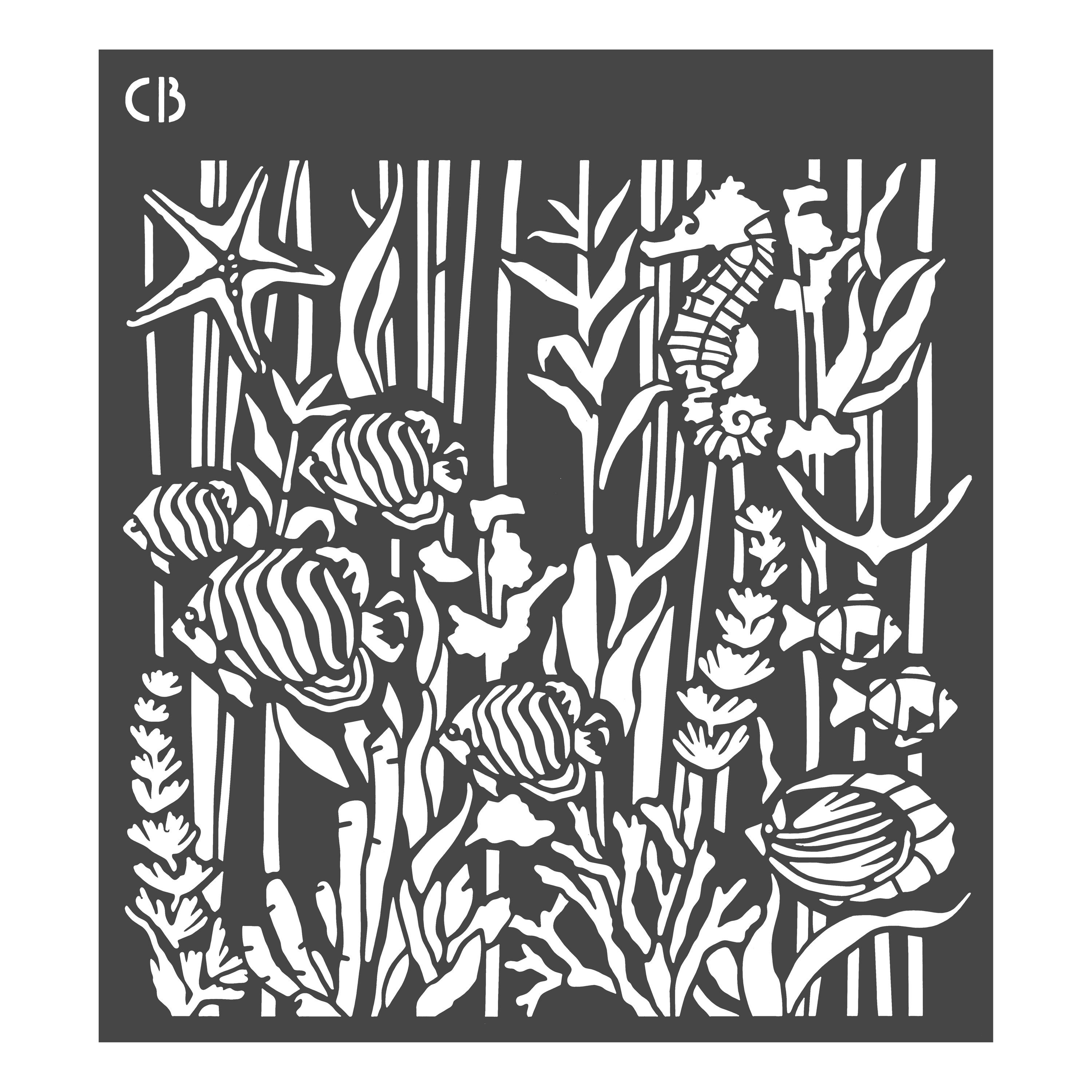 Du liebst sommerliche Designs und möchtest deine Papierarbeiten, Scrapbooking- und Mixed-Media-Projekte aufwerten? Mit der Schablone 'Under the Ocean' kannst du eine Unterwasserwelt mit Fischen, Seepferdchen, Seesternen und Korallen gestalten. Die Schablone ist aus Polyethylentherephthalat (PET) und hat eine Breite von 22,0 cm und eine Длина von 24,0 cm. Sie ist ideal geeignet, um sie auf Keilrahmen, Fliesen, Papier und Co. zu verwenden. Passende Motivstrohseiden, Lasercut-Motive, Bänder, Anhänger und Streuteile sind eine super Ergänzung für eine individuelle Kreativarbeit.