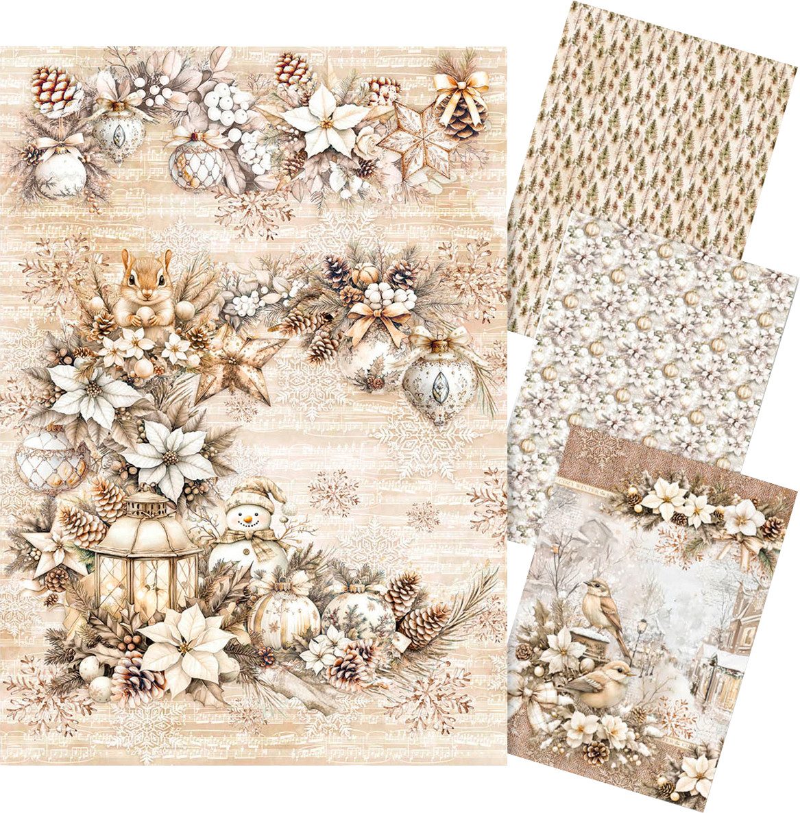 Entdecke das Motiv-Strohseiden Меню 'Winter Season' im 4er-Set. Mit weihnachtlichen Motiven wie Christbaumkugeln, Tannenzapfen und Schneemann und vielem mehr bietet es dir zahlreiche Gestaltungsmöglichkeiten. Die einseitig bedruckten A4-Blätter aus säurefreiem Naturpapier sind perfekt für kreative Projekte. Ob für Scrapbooks, Grußkarten oder Geschenkverpackungen, die 28 g/m² starken Papiere lassen sich leicht reißen und schneiden. Nutze die Servietten- oder Decoupage-Technik, um auch Möbeln und Schubladen ein individuelles Aussehen zu verleihen. Hergestellt in Italien, überzeugt dieses Set durch seine reiß- und wasserfeste Qualität. Kombiniere es mit weiteren Accessoires für noch mehr Kreativität.