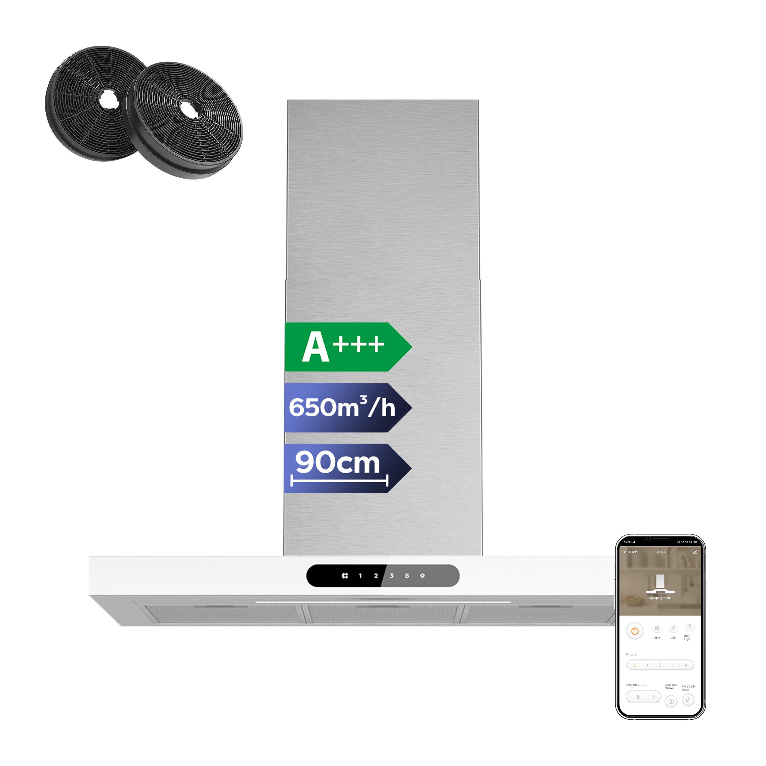 Top-Features | ENERGIEEFFIZIENZ A+++ WANDHAUBE: Die CIARRA A+++ Dunstabzugshaube hat eine höhere Saugleistung und einen geringeren Energieverbrauch, diese energieeffiziente Wandhaube, die die jährliche Stromrechnung um 85 % einsparen kann. LEISTUNGSSTARKE SAUGLEISTUNG UND LEISE GERÄUSCHPEGEL: Die Dunstabzugshaube mit leistungsstarker Luftverdrängung von 650 m³/h und leise Betriebsgeräusche in 59 dB(A) für effektive Luftzirkulation und saubere Luft in kurzer Zeit. DYNAMIC CIARRA LOGO: Die Schräghaube verfügt über ein reichhaltiges Dynamic Touch-Panel (jedes Mal, wenn Sie die Touch-Taste betätigen, blinkt das Logo), das Ihre Küche zu einem modernen, stilvollen Blickfang macht. |