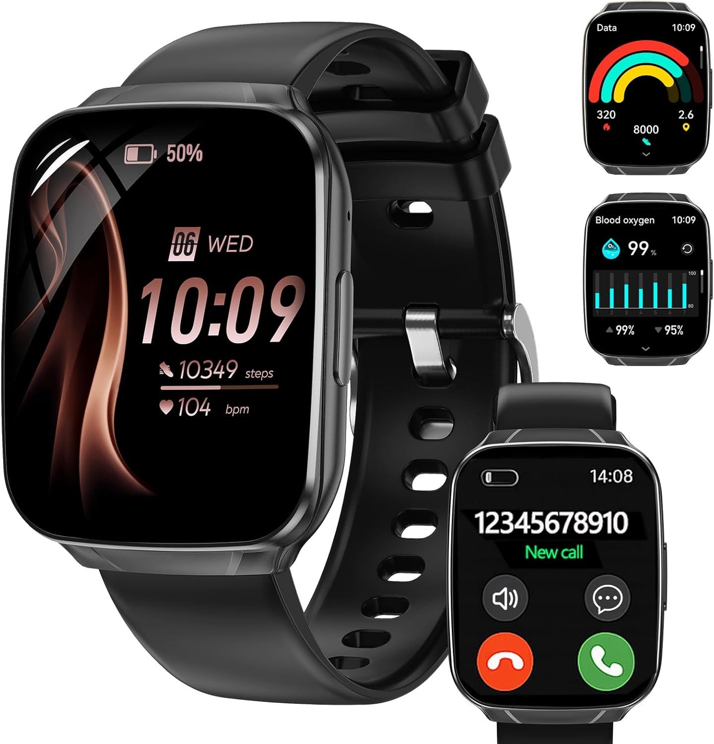 Zusatzfunktionen | Smartwatch mit Telefonfunktion Fitness Uhr mit großem Display Damen Smartwatch mit Anruf Herren Smartwatch mit Sportmodi Gesundheitsuhr mit Pulsmesser Smartwatch mit Schlafüberwachung Uhr mit Schrittzähler und Kalorien Smartwatch kompatibel mit iOS Android Wasserdichte Fitness Smartwatch Smartwatch mit Blutsauerstoff Messung Sport Smartwatch für Damen Herren Smartwatch mit langer Akkulaufzeit Moderne Smartwatch mit Benachrichtigung Touchscreen Uhr mit Musiksteuerung Multifunktionale Fitness Smartwatch |