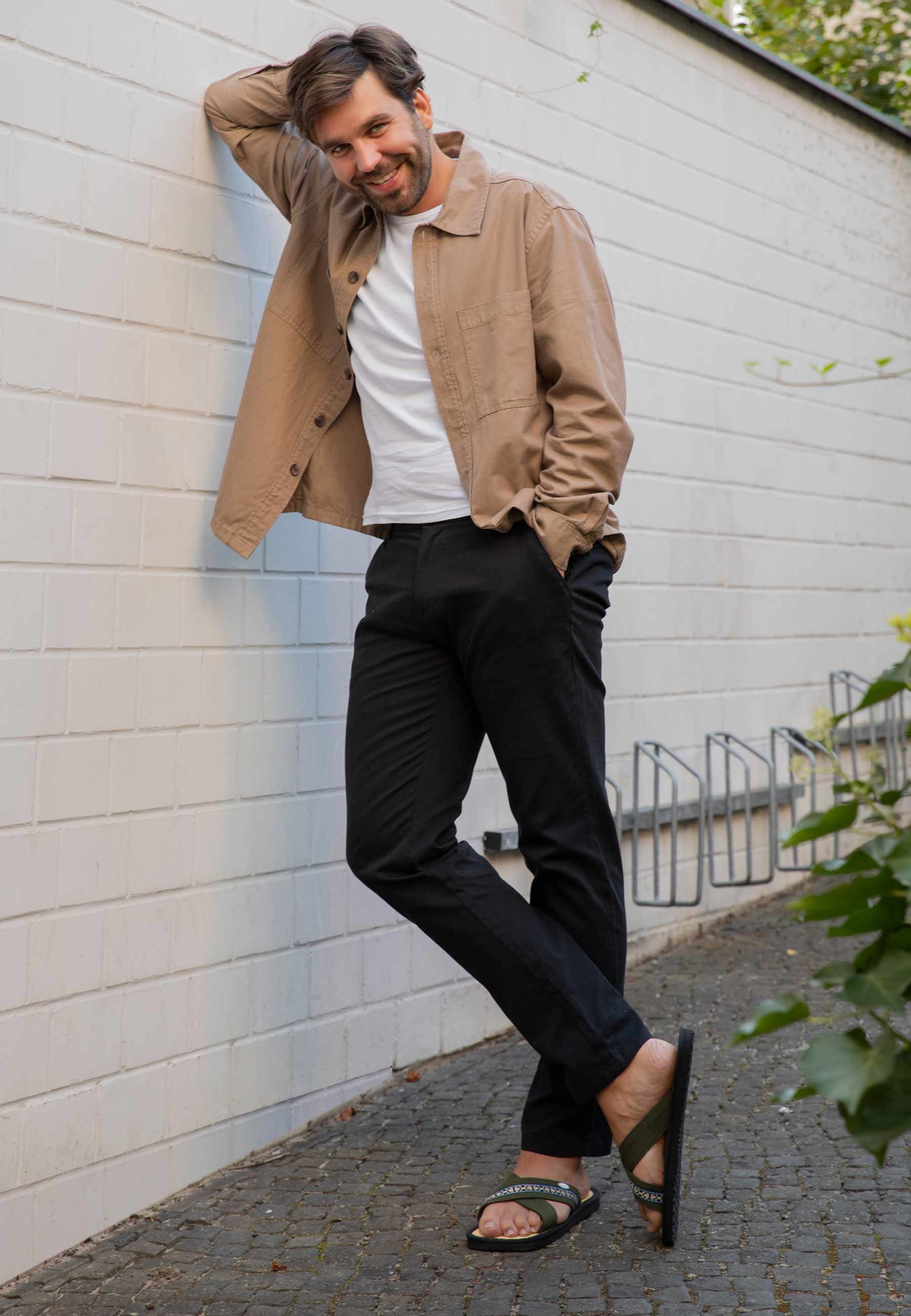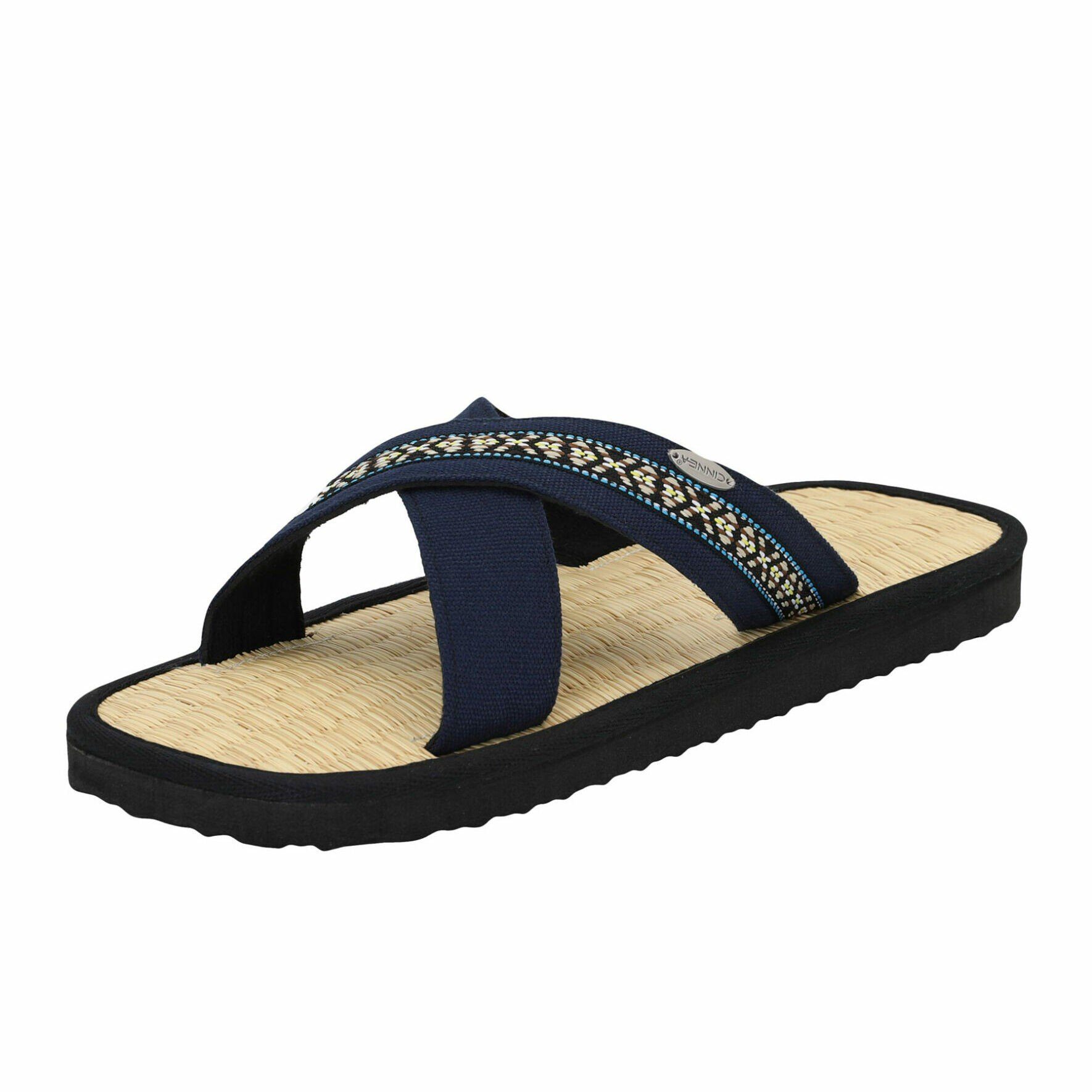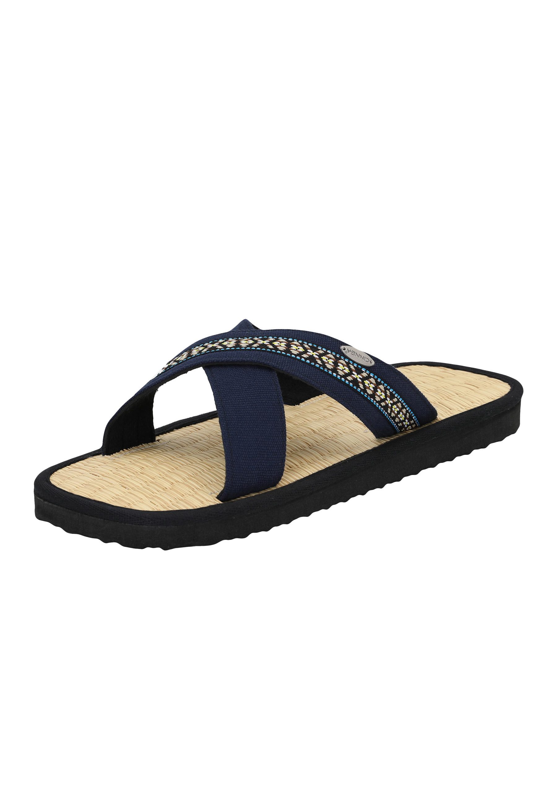 Erfreue dich an unschlagbarem Tragekomfort mit unseren Zimt Latschen „Farso“. Diese Sandalen sind nicht nur äußerst tragefreundlich, sondern auch äußerst stilvoll, mit überkreuzten Baumwollriemen, die in zwei eleganten Вариантыn erhältlich sind – Royalblau oder Olivgrün mit einer dezenten Musterung. Die Riemen sind großzügig 2,5 cm breit, und verleihen diesen Latschen ein zeitlos modernes Aussehen. Egal, ob du einen sportlichen Look bevorzugst oder dich lässig-elegant kleidest, diese Sandalen passen perfekt zu jedem Stil und sind auch als Haussandale geeignet.