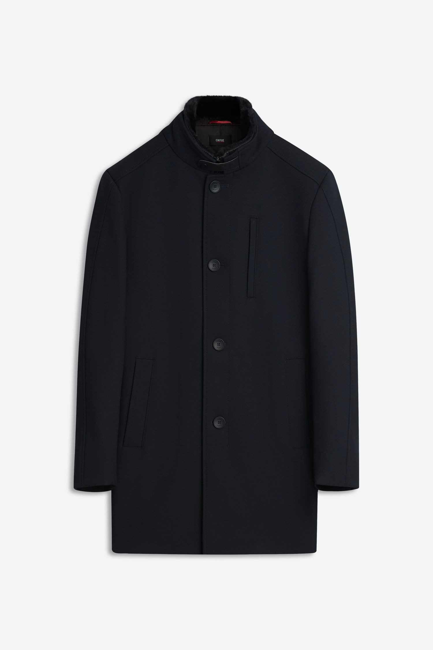 Leichter Wollmantel mit 2 in 1 Optik. Passt perfekt zum Anzug und ergänzt jeden Freizeitlook mühelos.