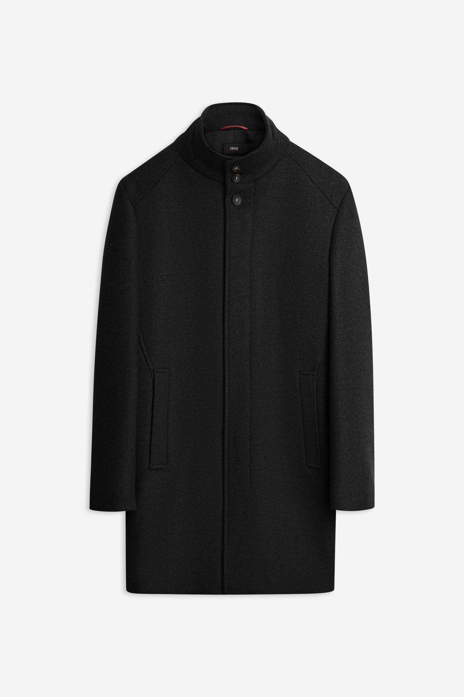 Der urbane Statement Coat mit Stehkragen und verdeckter Knopfleiste lässt sich sowohl im Business als auch der Freizeit mühelos kombinieren. Highlight: die markante Schulterpasse.