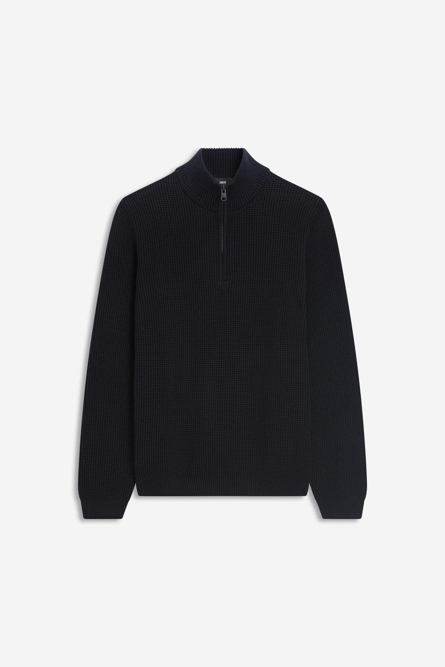 Der Strickstoff aus Baumwollmischung wärmt und ist angenehm zu tragen. Trockne den Pullover am besten im Liegen auf einem Wäscheständer, um das Strickmaterial zu schonen.