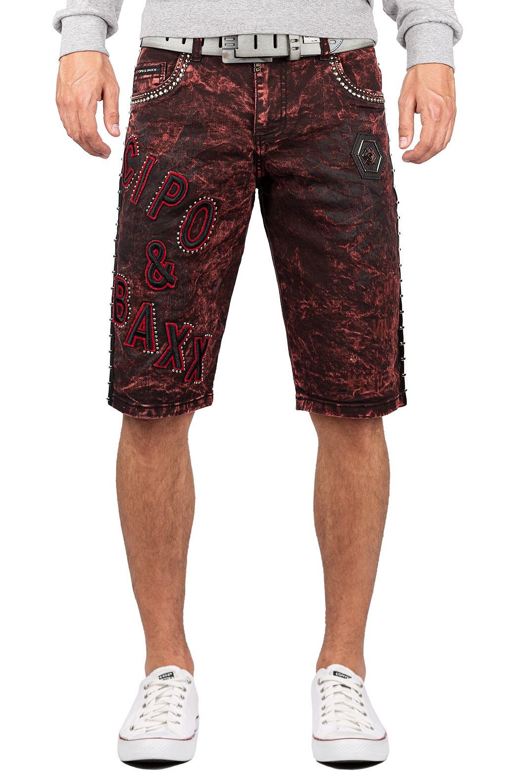 Die hochwertige Verarbeitung dieser Shorts macht sie zu einem Must-have für den Sommer. Der Regular Fit und die knielange Passform bieten optimalen Komfort und Bewegungsfreiheit. Dank des 5-Pocket-Styles und der markanten Nieten setzen Sie modische Akzente, die ins Auge fallen. Der Cipo & Baxx Schriftzug und die Kunstlederbereiche sorgen für das gewisse Etwas und heben diese Shorts von der Masse ab.