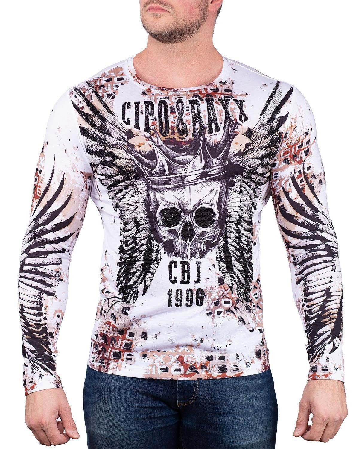 Cipo & Baxx Herren Langarm-Shirt mit großem Totenkopf- und Flügel-Print, ideal für modische Herren