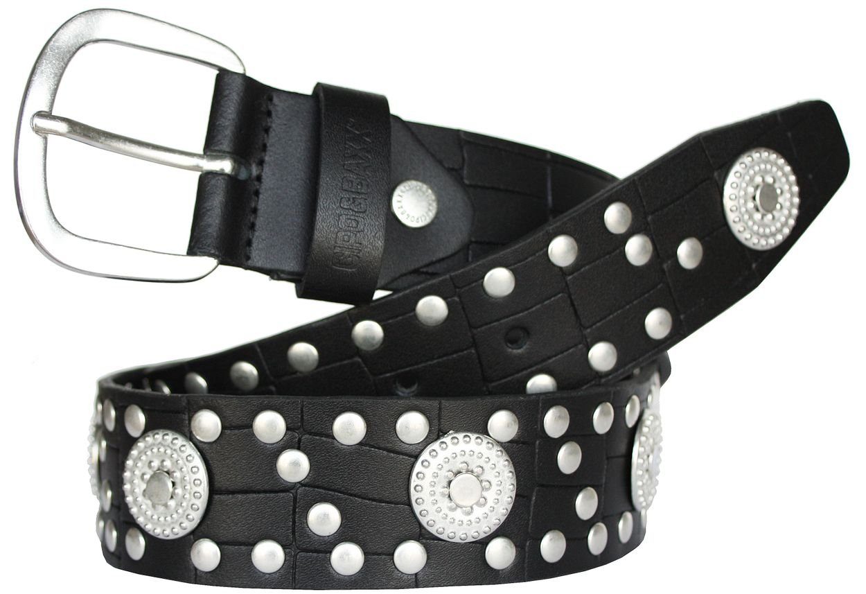 Materialzusammensetzung | Gürtel: Leder, Schnalle und Nieten: Metall |
