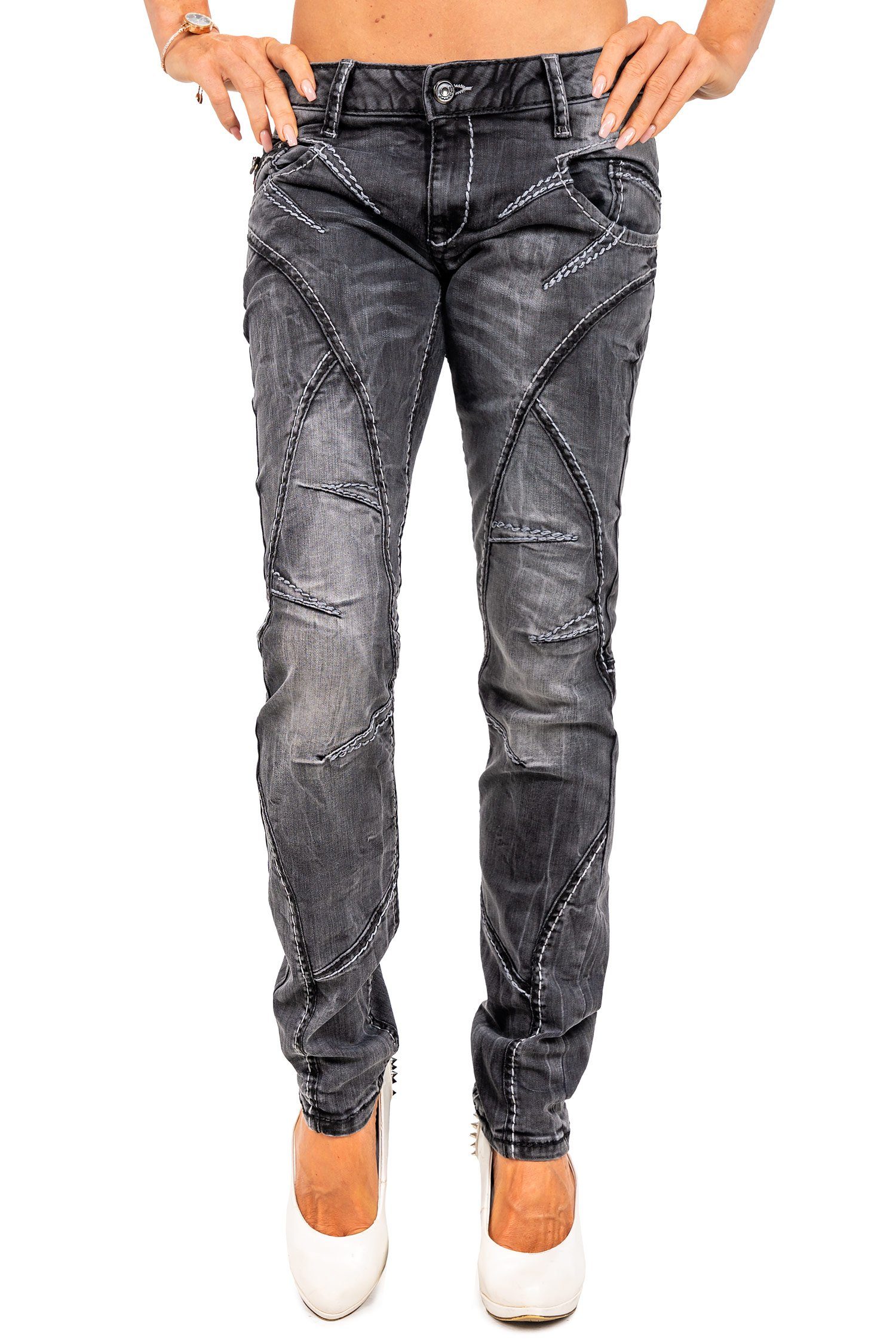 Cipo & Baxx Damen Blackjeans mit trendigen Ziernähten und Reißverschluss