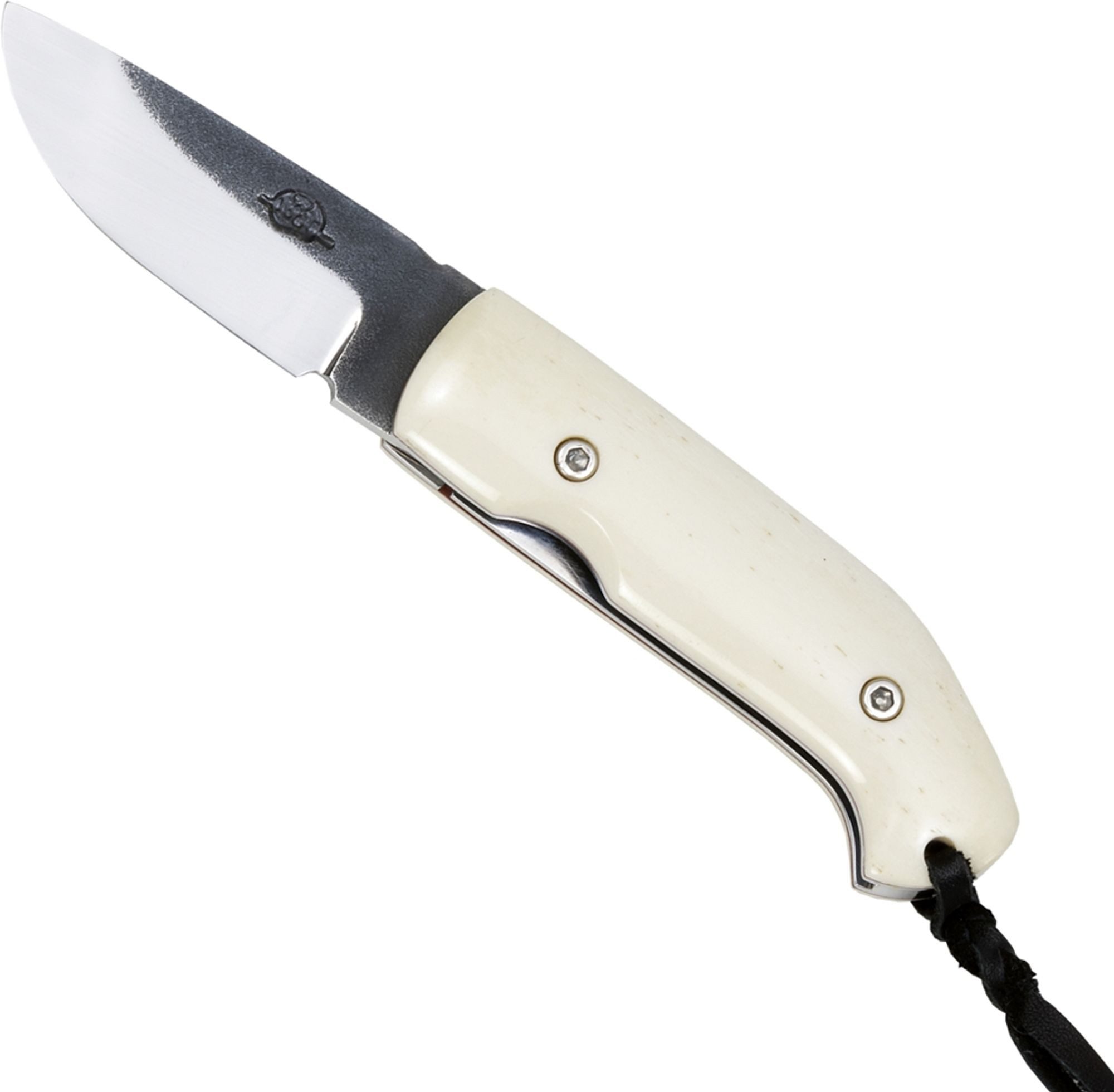 Die Klinge ist handgeschmiedet aus T508 Stahl (rostträge) mit einer Härte von ca. 58° Rockwell. Sowohl Griff als auch Klingenrücken sind aufwendig mit einer Gravur verziert. Die Klinge arretiert mit einem Liner-Lock. Die Lieferung erfolgt in einem Softcase.