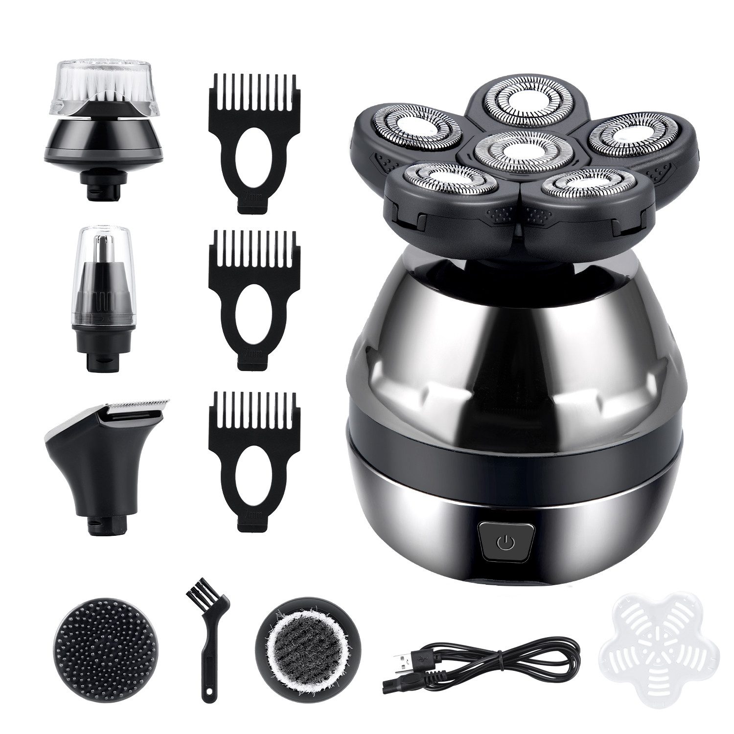 Lieferumfang | Nasenhaarschneiderkopf (inkl. Schutzhülle)*1 Reinigungsbürstenkopf (inkl. Schutzhülle)*1 Silikon-Massagekopf * 1 Haarschneidekopf * 1 Grenzkamm * 3 (3MM-5MM-7MM) USB-Ladekabel * 1 Kleine Reinigungsbürste * 1 Bedienungsanleitung |