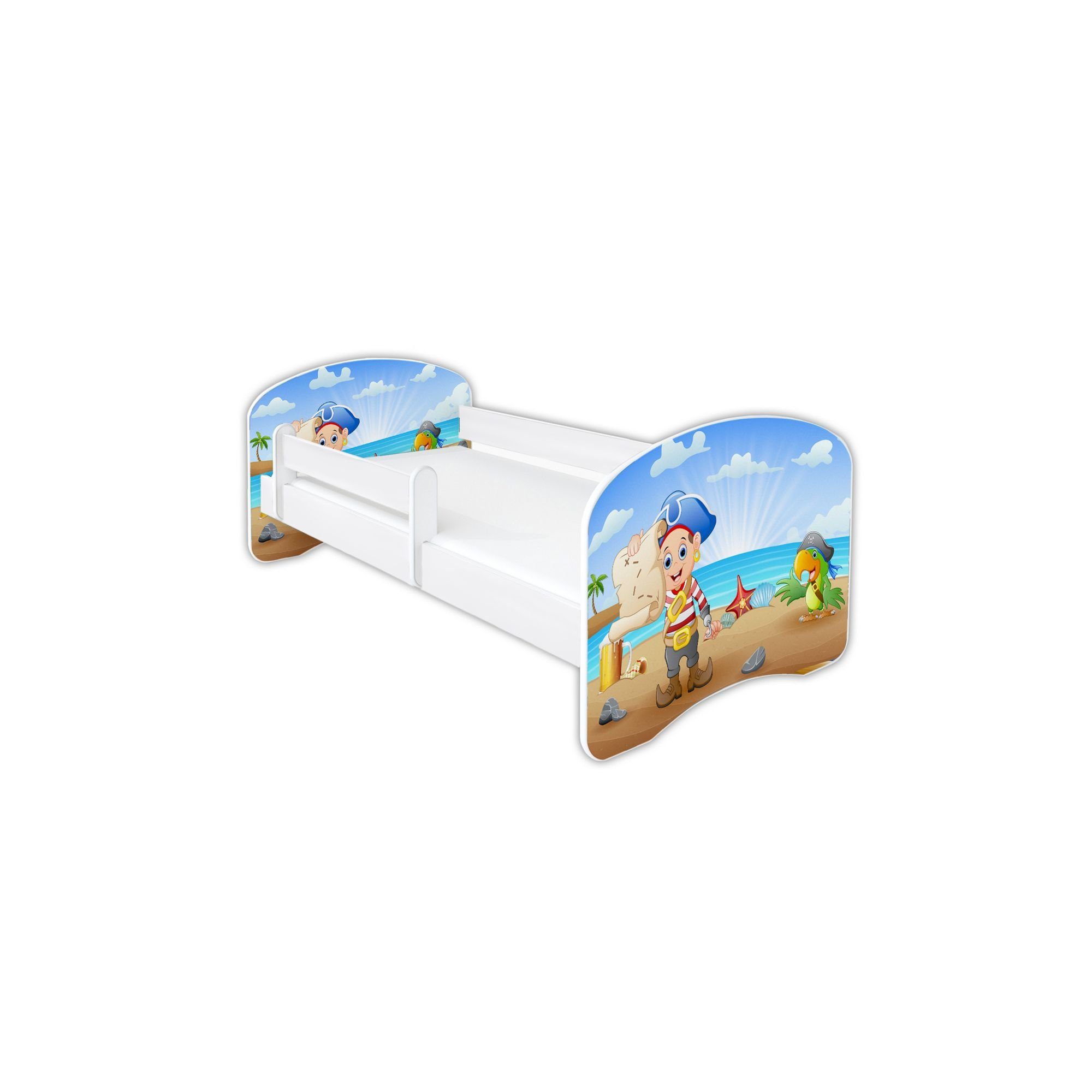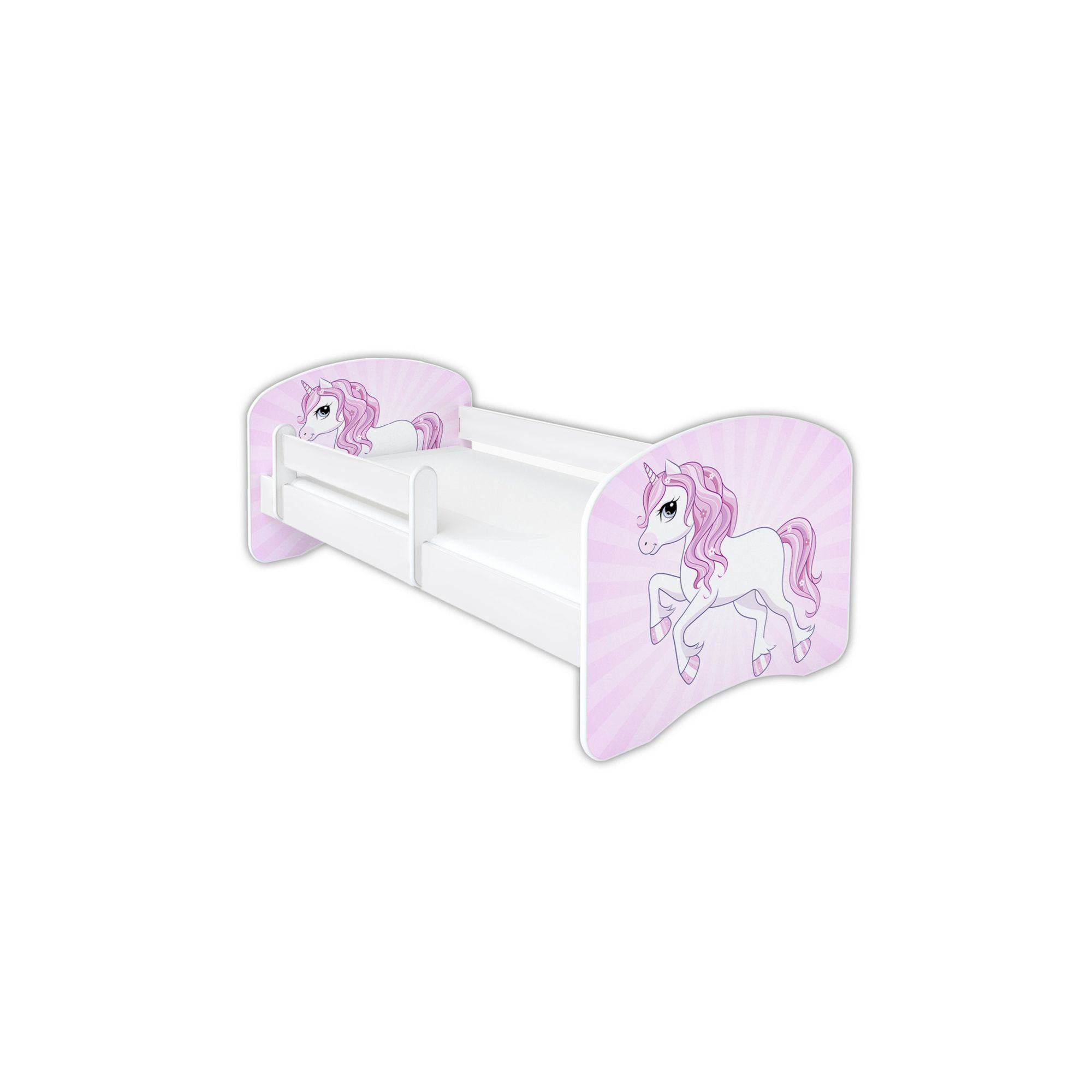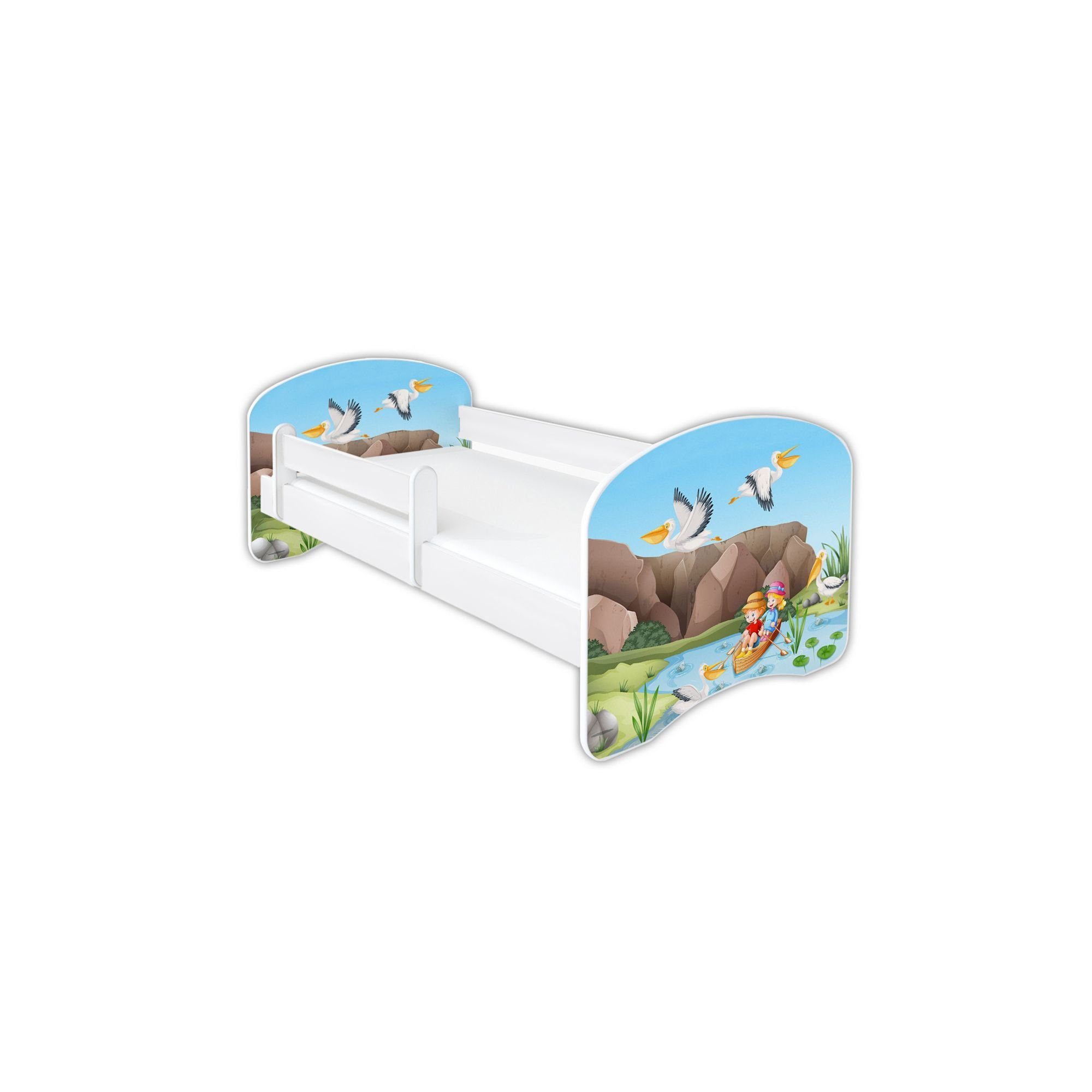 Lieferumfang: Bett, Rausfallschutz Seitenteil, GRATIS Matratze, Lattenrost Gefedert, Unterbett Schublade (optional)
