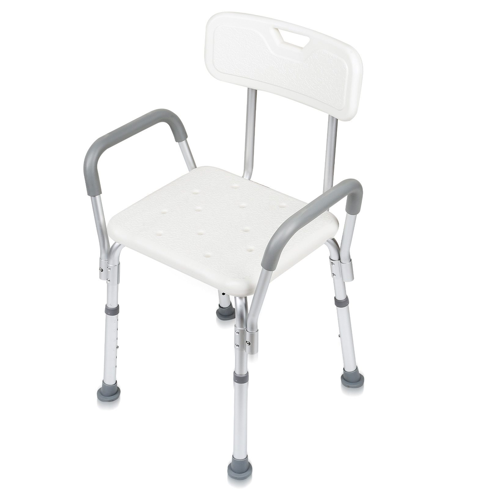 Komfortabler Duschhocker mit Lehne - höhenverstellbar, rutschfest und stabil, trägt ein Maximalgewicht von 136 kg.