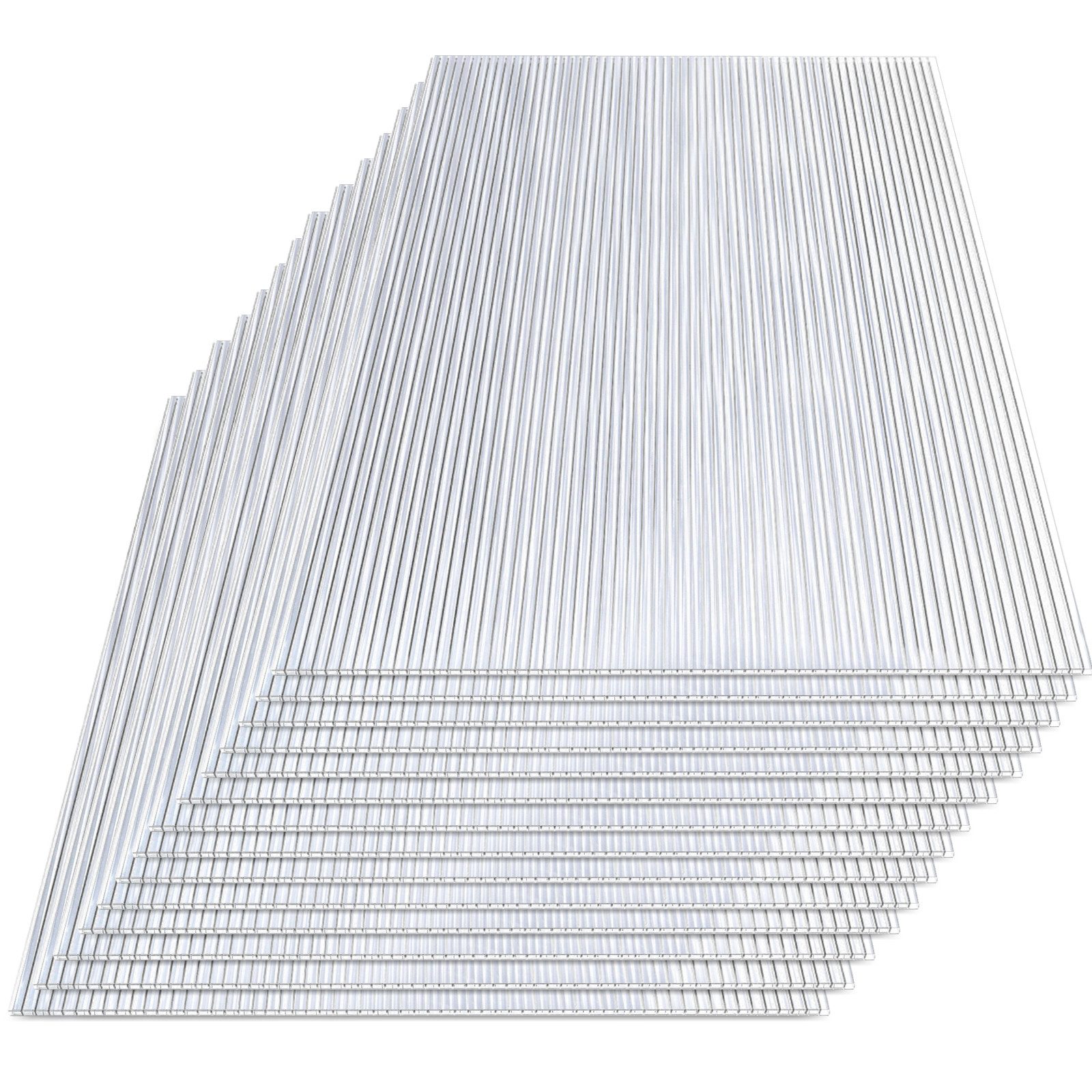 √ Lieferumfang: 14x Hohlkammerstegplatten je 60,5 x 121cm, 4mm dick, Flächengewicht: 600g/m², transparent.