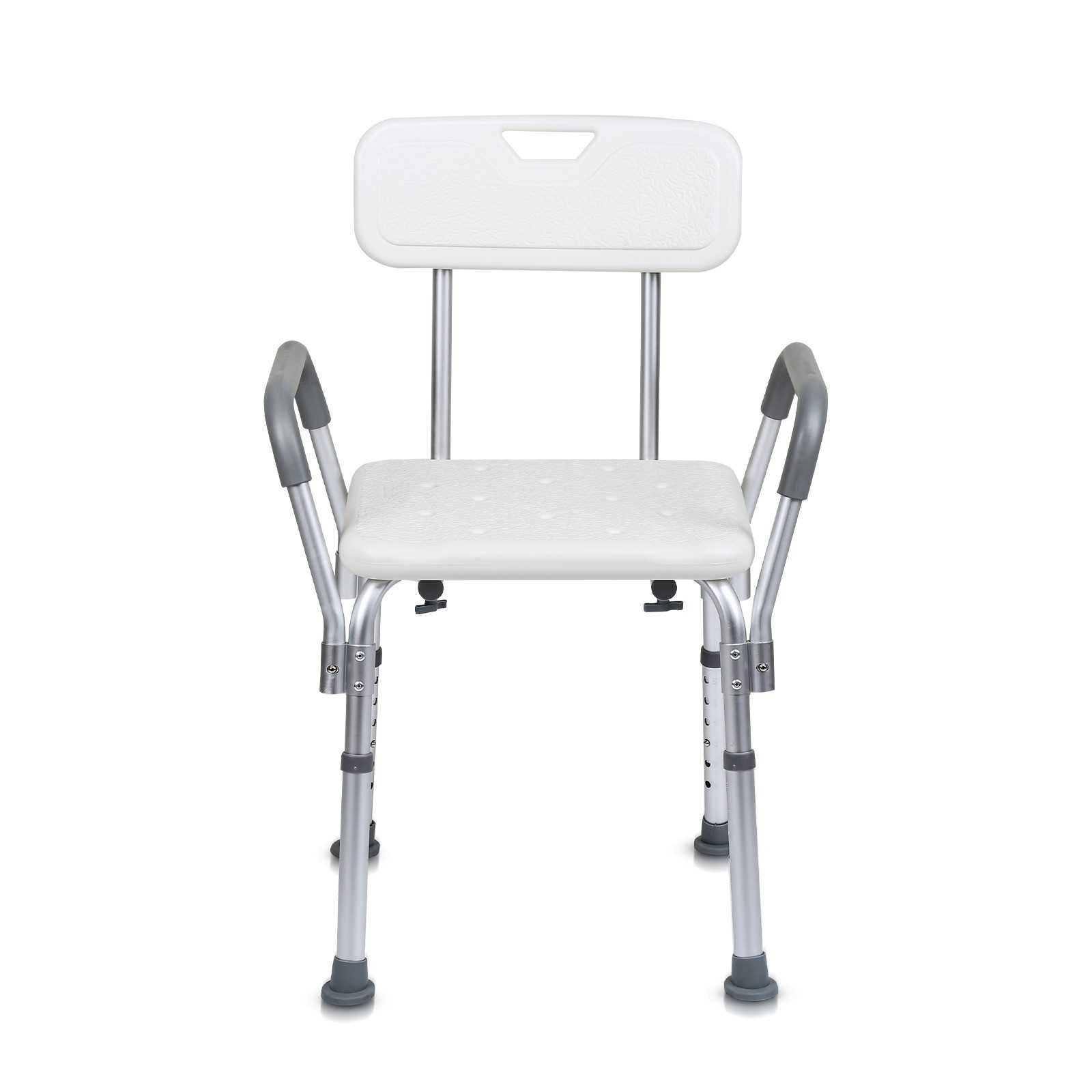 Komfortabler Duschhocker mit Lehne - höhenverstellbar, rutschfest und stabil, trägt ein Maximalgewicht von 136 kg.