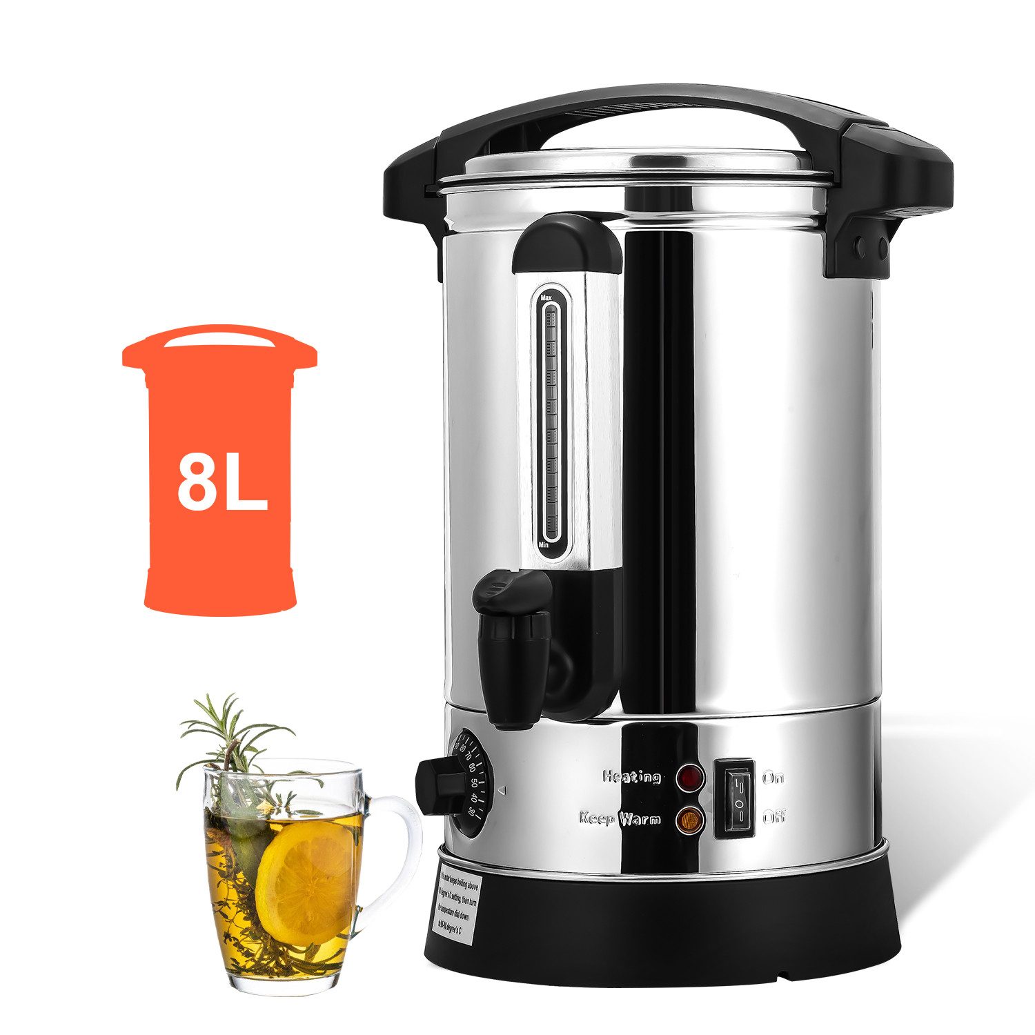 Großes Fassungsvermögen: Mit einem Edelstahlgehäuse und einem hochwertigen Wasserspender hat der Heißgetränkeautomat ein maximales Fassungsvermögen von 8 Litern, was ideal für kleine Zusammenkünfte und Feiern mit Freunden und Familie sowie für kleine Gruppen ist.