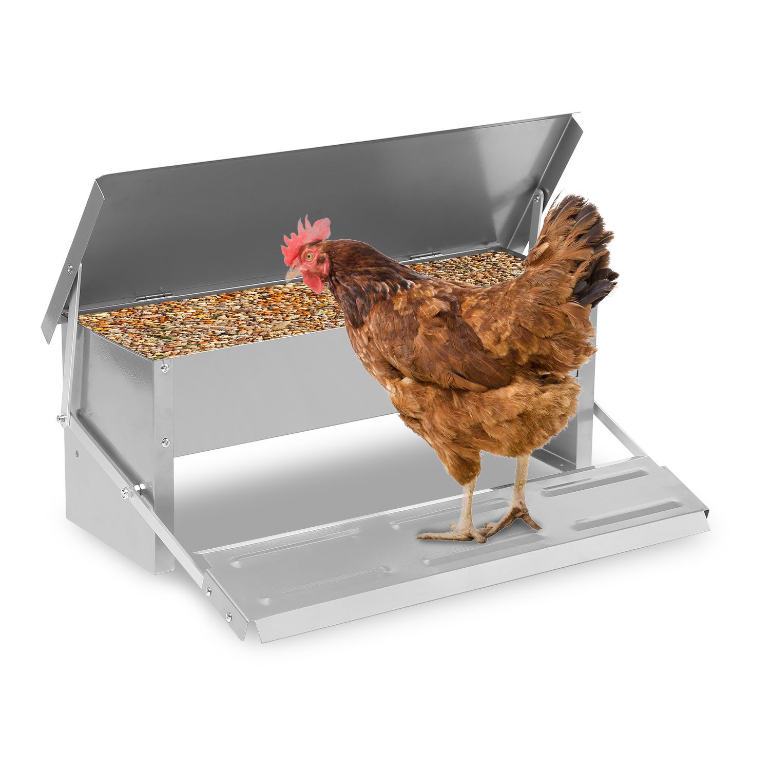Hält Futter sauber und frisch: Verhindert, dass Wildvögel, Ratten und Mäuse Futter stehlen.Das Automatische Profildesign stellt sicher, dass die Hühnerfütterungsstationen geschlossen sind, während das Geflügel füttert.