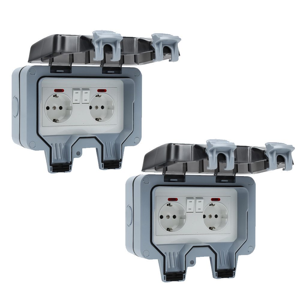 Diese wasserdichte Doppelsteckdose verfügt über unabhängige Schalter, eine Kontrollleuchte und eine abschließbare Abdeckung, die versehentliches Öffnen verhindern und Kinder schützen. Sie müssen nicht mehr am Stecker ziehen, sondern können die Schalter leicht mit einer Berührung Ihres Fingers steuern.